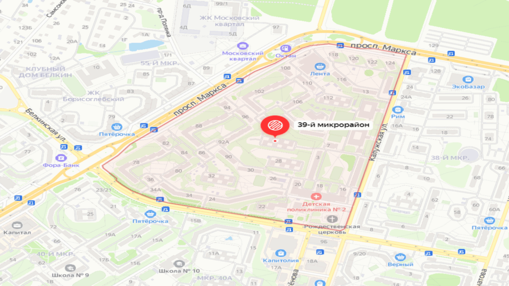 39 район является самым оживленным районом Обнинска. Здесь сосредоточены административные здания, культурные учреждения, торговые центры и другие важные объекты.
