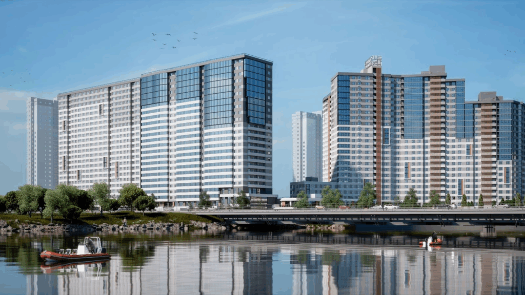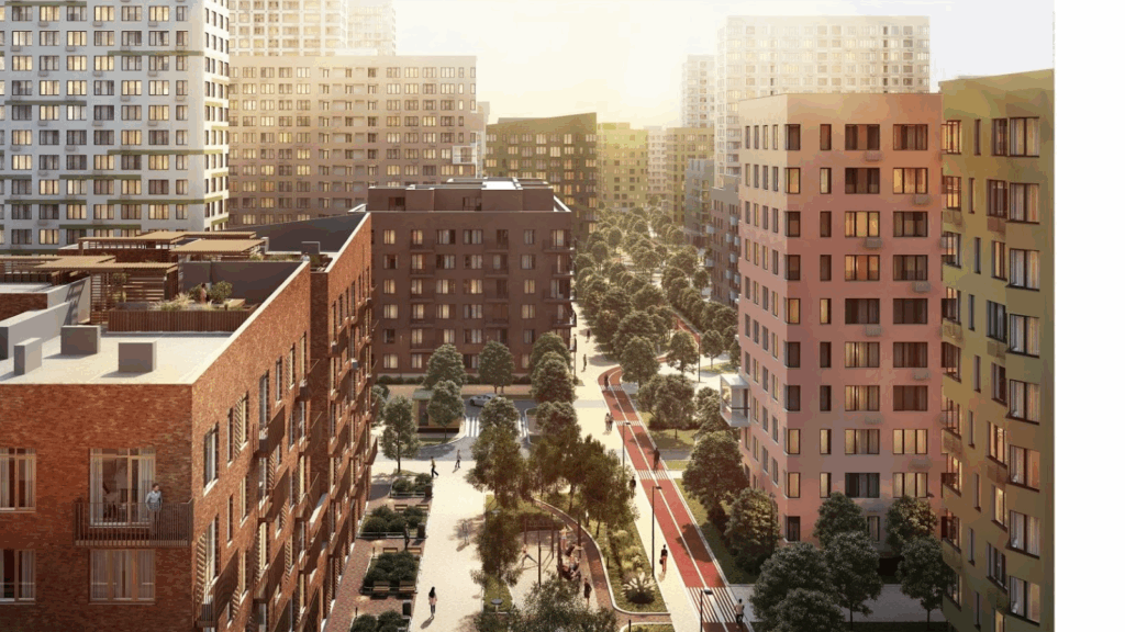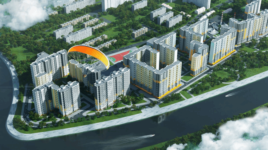 Это проект комфорт-класс, реализуемый в формате многокорпусного комплекса. Застройка включает 15 строений высотностью от 19 до 23 этажей, а также объекты социальной инфраструктуры. Она будет включать бизнес-центр, медицинские учреждения (две поликлиники), образовательный кластер (школа на 1510 учащихся и четыре детских дошкольных учреждения на 705 мест), торгово-развлекательный комплекс и физкультурно-оздоровительный центр. Коммерческие помещения на первых этажах жилых зданий отведены под магазины, банковские офисы, салоны красоты и другие сервисные объекты. А для автовладельцев предусмотрены паркинги двух типов: подземные и многоуровневые наземные.