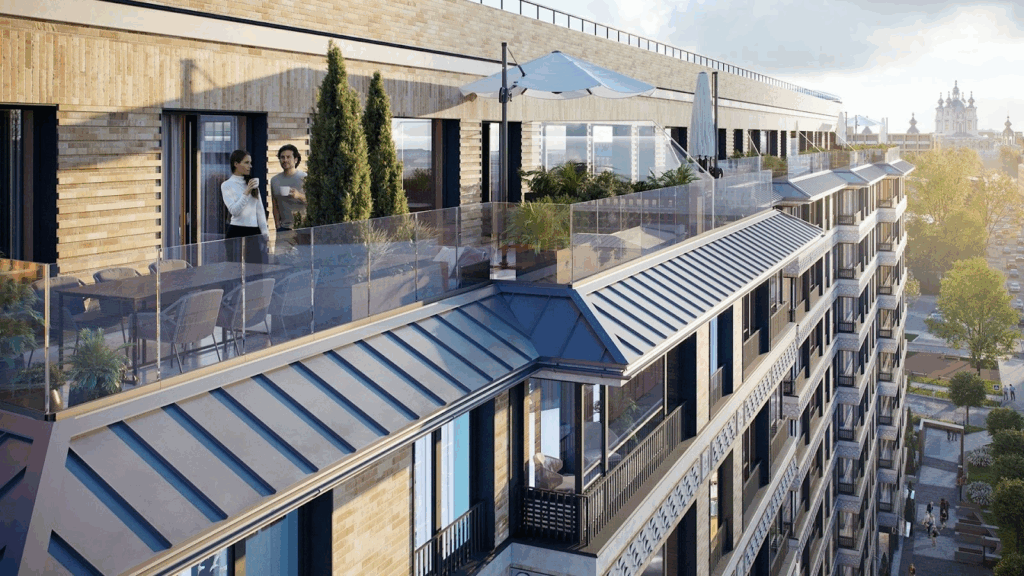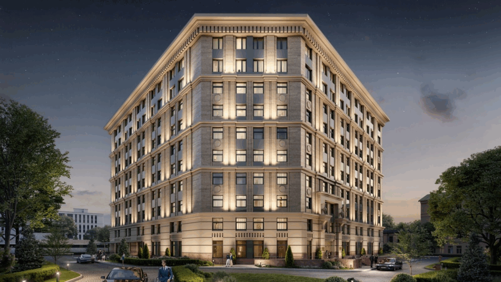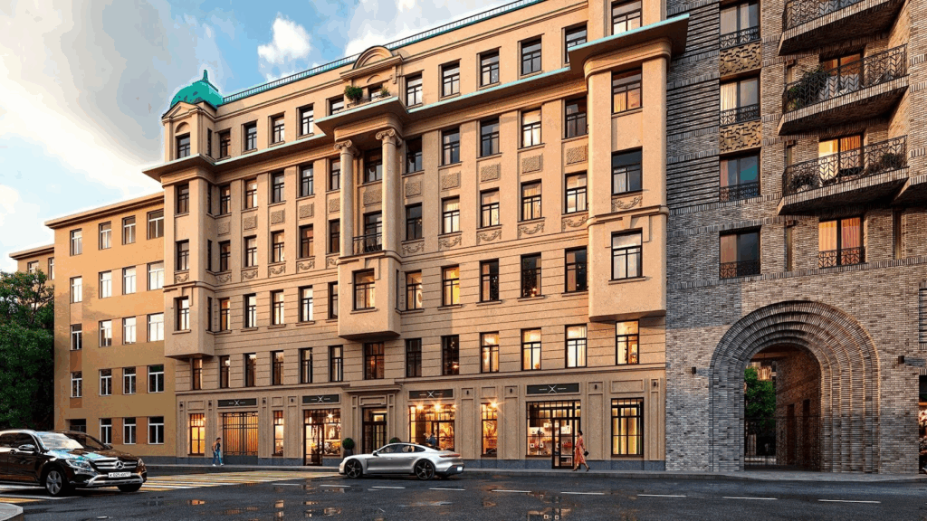 Например, апарт-комплекс бизнес-класса VIDI расположен на Синопской набережной. Это здание с навесными фасадами из фиброцементных панелей пастельных оттенков. Парадная сторона дома визуально разделена на три части, среди деталей — парные пилястры и зеркальные окна. Территория дома закрыта для машин и посторонних. А первый этаж здания отведен под уютное лобби с круглосуточной службой ресепшн.