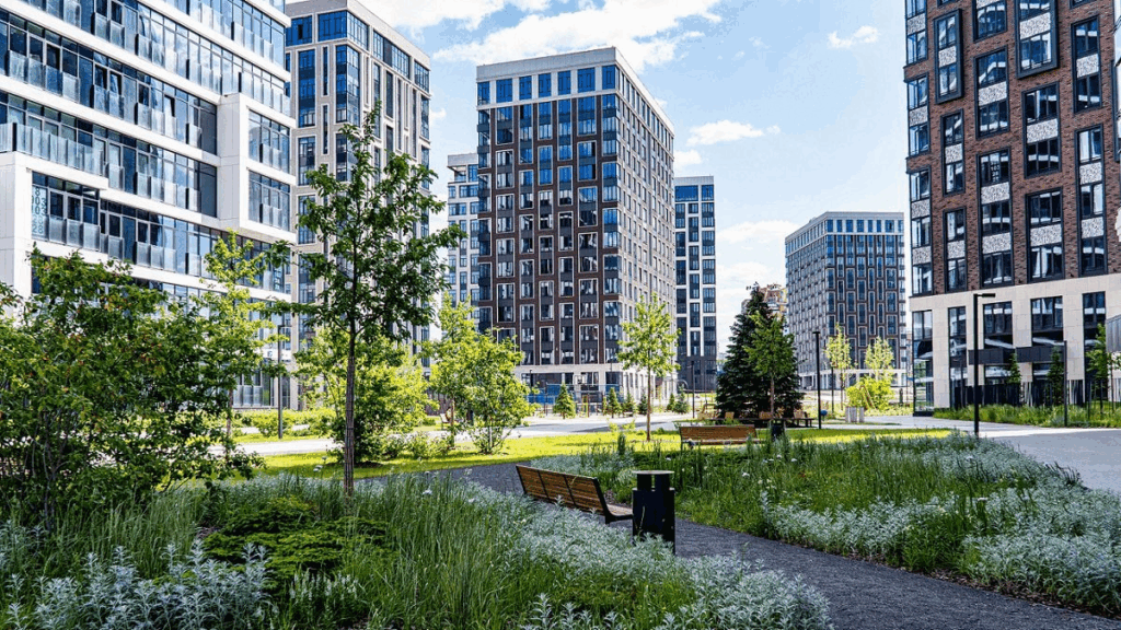 Так, в столичном районе Раменки находится, например, ЖК West Garden. Комплекс расположен на участке площадью 19 га и состоит из 15 клубных домов высотой 12–14 этажей. Кроме того, здесь предусмотрены ландшафтный парк на 16 га и набережная. В парке и вдоль набережной протяженностью около двух километров проложены пешеходные аллеи, беговые и велосипедные дорожки. На территории собрания клубных домов оборудованы детские и спортивные площадки, обустроены места для отдыха со скамейками, беседками, лежаками и зона йоги с деревянным настилом. Предусмотрена охрана и видеонаблюдение.