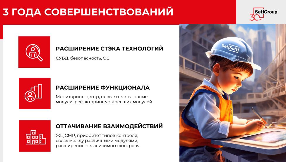 «Таким образом за семь лет мы прошли путь от прототипного решения до большой системы, которая написана на основе опыта наших строителей и действительно приносит эффект, помогает строить качественнее и быстрее», – заключил Михаил Малыхин.