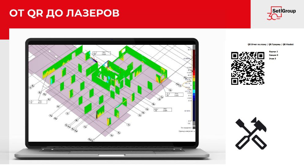 Система получила уникальные преимущества, обратил внимание Михаил. Здесь есть среда общих данных по обмерам лазерами наших объектов и этажей: «сканируем монолит, камень, предчистовую и чистовую отделку, фасады, что позволяет инженерам строительного контроля идти только на указанные лазерные участки».