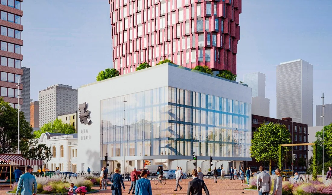В составе культурно-общественного блока запроектированы большой зал на 707 мест с улучшенной акустикой, камерный зал на 68 мест, выставочные и общественные пространства, ресторан с террасой, медиаплатформы и помещения для творческой деятельности.