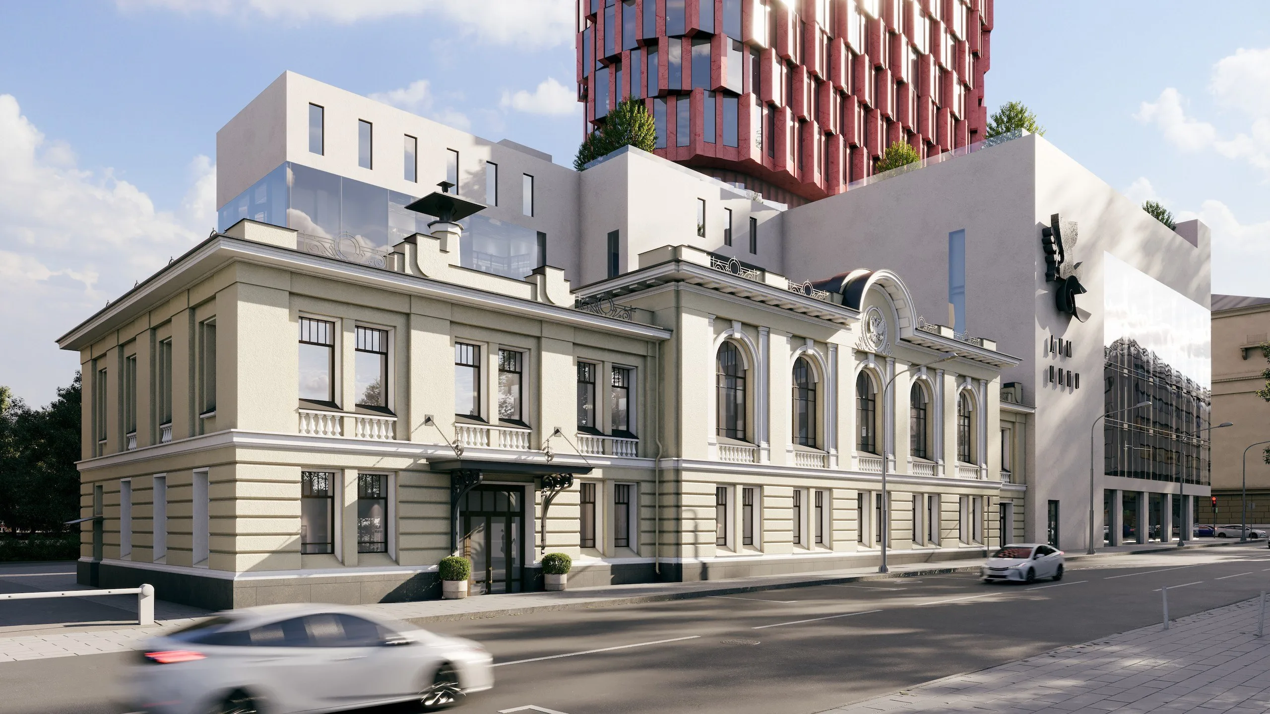 Комплекс также включает работы по реставрации исторического Алексеевского народного дома и строительство нового здания Дома Союза кинематографистов России.