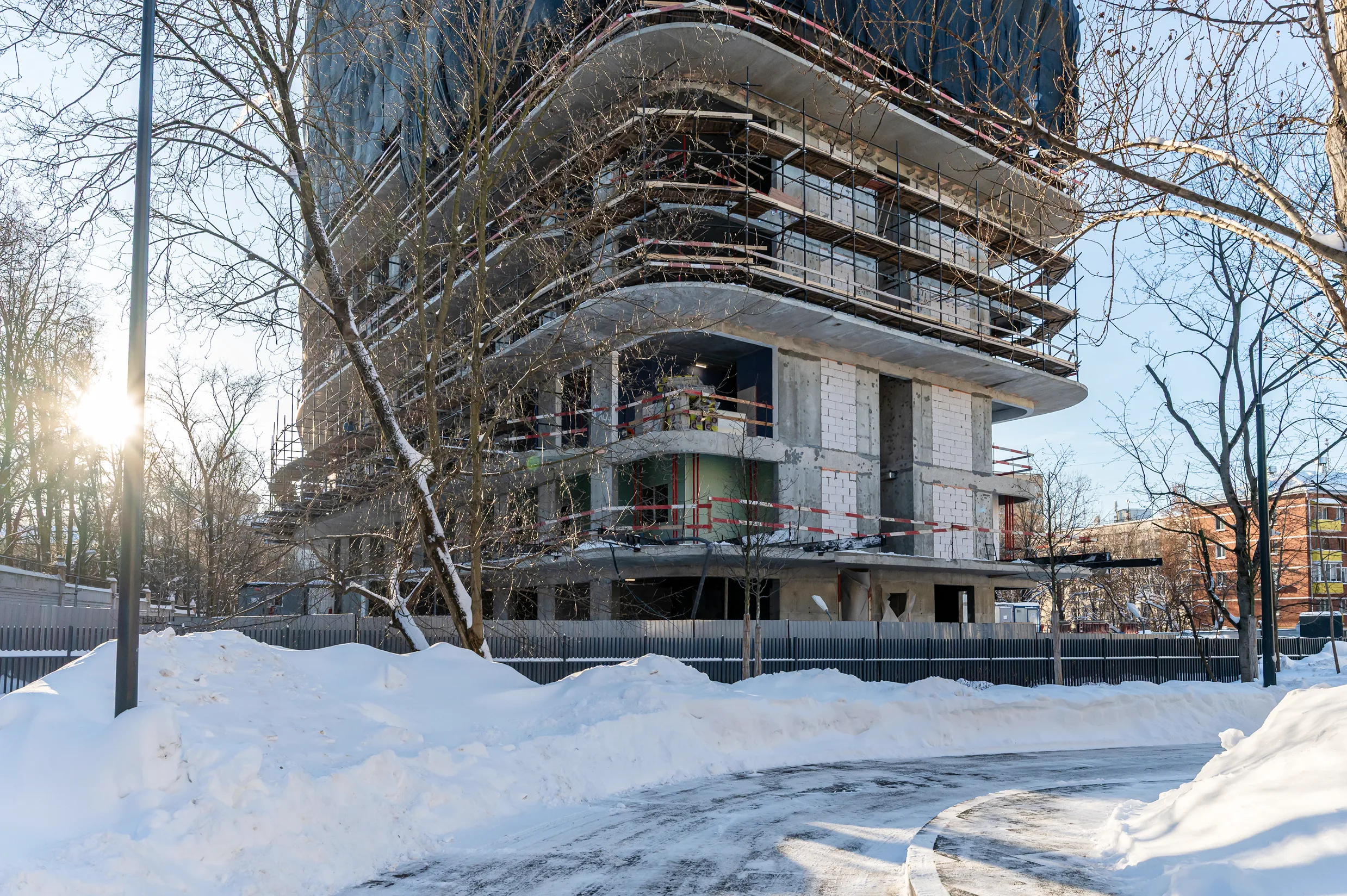 Общий процент выполнения монолитных конструкций – 98,4%, строительно-монтажных работ – 42%. Ввод здания в эксплуатацию запланирован на 2027 год.
