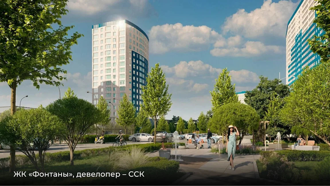 Единственный на сегодняшний день строящийся в Краснодаре жилой комплекс у реки — ЖК бизнес-класса «Фонтаны» от компании ССК — расположен как раз в районе Черемушки. Вдохновленная речной и морской стихией, тематика комплекса последовательно воплощена в округлых формах зданий, бело-голубой палитре фасадов, а также в оформлении игровых площадок и даже в названии детского сада «Ручеек». Территория ЖК — полностью закрытая и охраняемая, а ее ландшафтный дизайн тщательно продуман для создания комфортной среды.