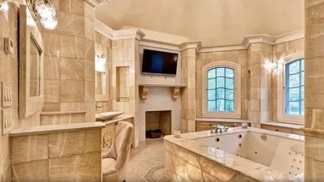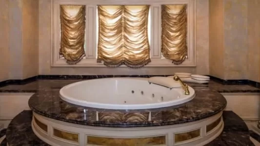 Каждая комната оформлена с использованием дорогих материалов, а цветовая палитра в основном представлена кофейными оттенками. Джакузи, отделанная белым и серым мрамором, добавляет элегантности ванной зоне. Мрамор не только красив, но и практичен благодаря своей прочности и устойчивости к влаге.