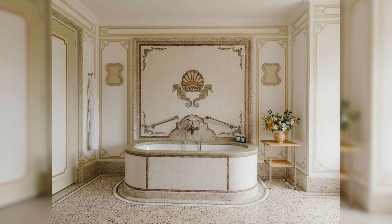 В интерьерах использованы материалы, напрямую связанные с регионом: каррарский мрамор, камень Лаванья, традиционная генуэзская мозаика, мотивы лигурийских садов.