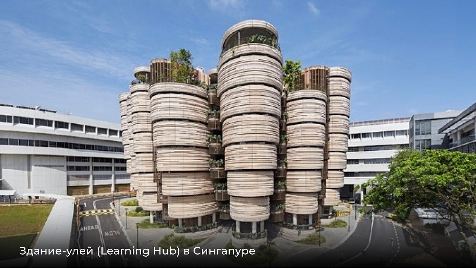 Здание Learning Hub, расположенное в Наньянском технологическом университете Сингапура, кардинально отличается от традиционных университетских корпусов. Проект состоит из 12 изогнутых бетонных башен, соединенных между собой. Здание, прозванное «Дим-сам» (Dim Sum), не имеет прямых углов и коридоров, что способствует созданию открытого, неформального пространства для общения и обучения. Каждая башня содержит аудитории, а между ними находятся открытые террасы и сады. Эта структура призвана стимулировать взаимодействие между студентами и преподавателями, разрушая границы между дисциплинами и способствуя креативному мышлению.