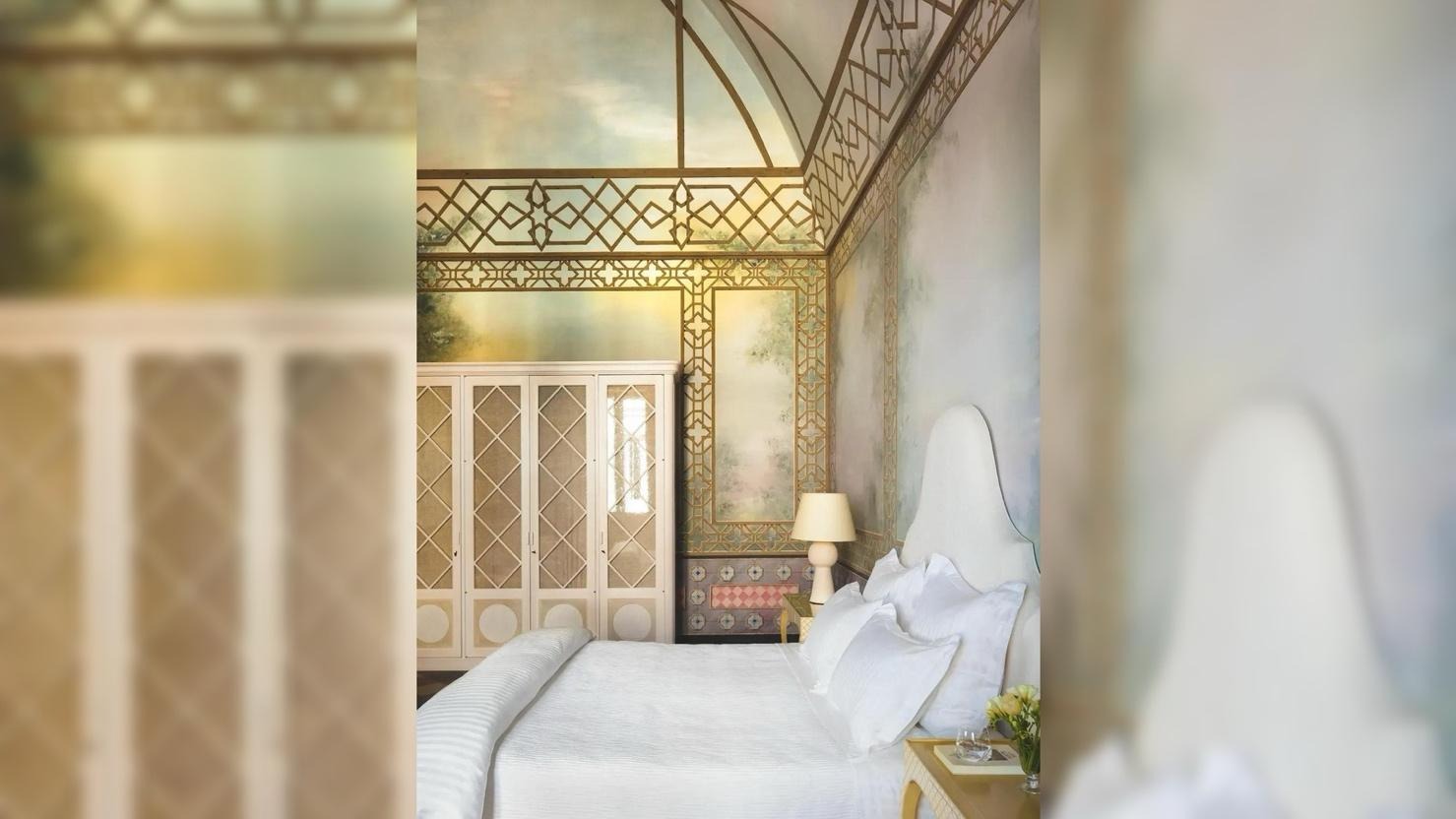 Комната режиссёра сочетает европейскую строгость и восточные мотивы. Изголовье кровати было разработано по индивидуальным эскизам, плетёная мебель отсылает к тунисским корням семьи, а геометрические узоры создают ощущение путешествия между культурами. Здесь нет показной роскоши — только продуманная тишина и тактильный комфорт.