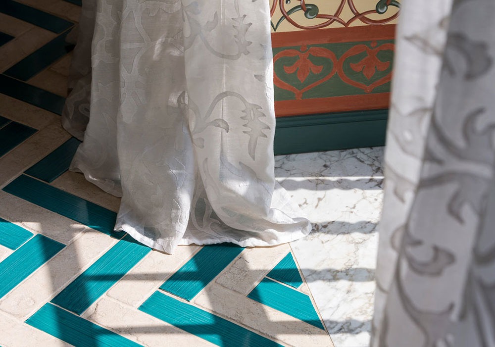 Для оформления интерьеров Фрэнсис Форд Коппола пригласил французского декоратора Жака Гранжа — мастера, умеющего работать с историческими пространствами без потери их аутентичности. Задача была сложной: сохранить монументальность палаццо и при этом наполнить его лёгкостью и домашним уютом.