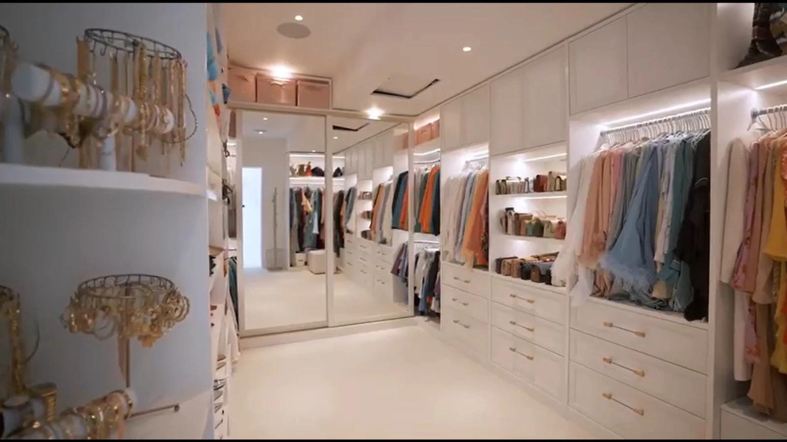Гардеробная зона больше напоминает кадр из голливудского фильма, чем стандартную комнату для хранения вещей. Продуманная система хранения, хорошее освещение, ощущение порядка и визуальной лёгкости — всё это делает пространство не просто функциональным, а вдохновляющим.