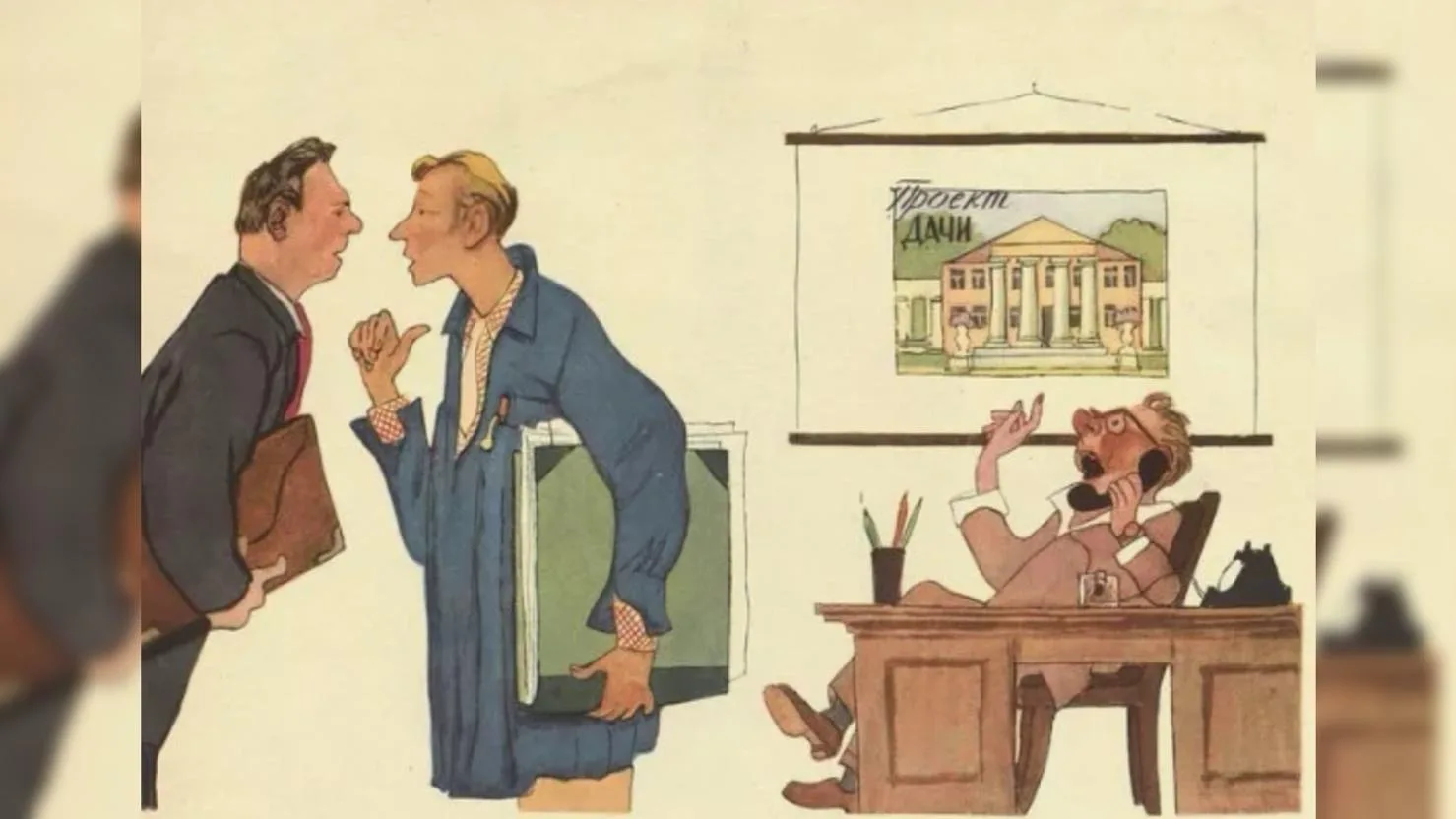 Особую роль в формировании образа дачи сыграл журнал «Крокодил». Это издание было одним из главных рупоров юмора и сатиры в СССР. На его страницах регулярно появлялись карикатуры и фельетоны, посвящённые дачной теме. Журнал высмеивал всё: злоупотребление алкоголем на природе, незаконное строительство и «самозахват» земли, обман при сдаче дач, бытовые конфликты между соседями. Карикатуры из «Крокодила» были узнаваемыми и точными. Они не просто развлекали, но и выполняли социальную функцию — показывали проблемы, о которых говорили неофициально. Например, типичный сюжет: человек строит дачу без разрешения, а потом удивляется, почему её требуют снести. Или дачник, который «экономит» на всём, но в итоге тратит больше. Или сосед, который считает свой участок центром вселенной.