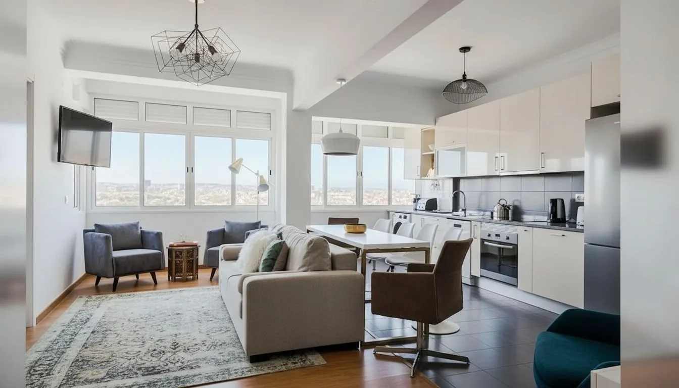 Средняя квартира в Португалии меньше, чем может показаться по фотографиям, но при этом функциональна. Типичные планировки обозначаются как T0, T1, T2 и так далее — по количеству спален. Интересно, что даже в старых домах квартиры могут быть довольно просторными за счёт высоты потолков и больших окон. В более современных зданиях упор делается на удобство: открытые кухни-гостиные, встроенные системы хранения, балконы или террасы.