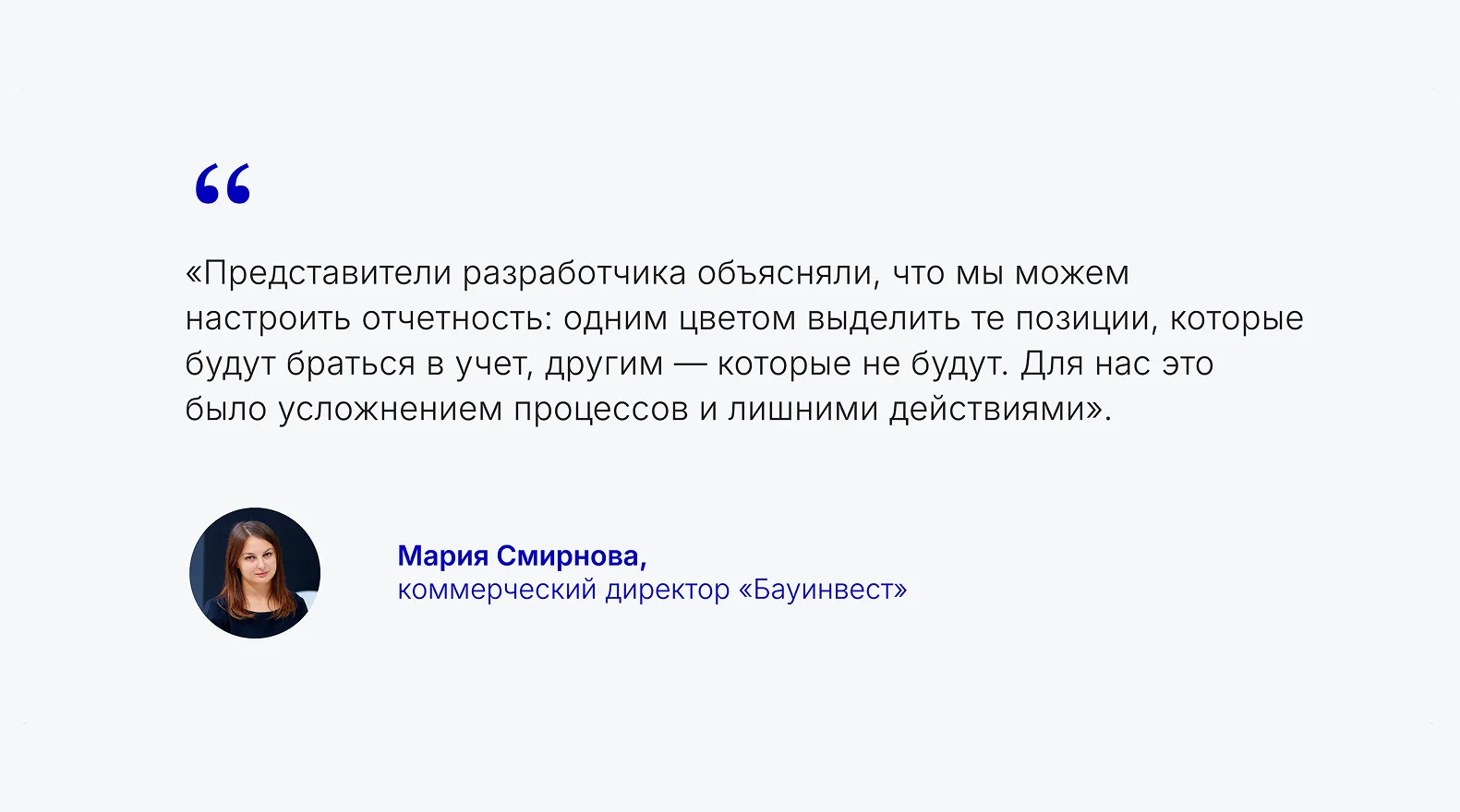 Самым критичным моментом в работе с цифровой платформной стала необходимость постоянно убеждаться в том, что данные отображаются корректно. Это противоречит самой цели внедрения любой цифровой системы. Очень быстро у девелопера появилось ощущение, что софт диктует ему правила работы, а не адаптируется под задачи бизнеса.