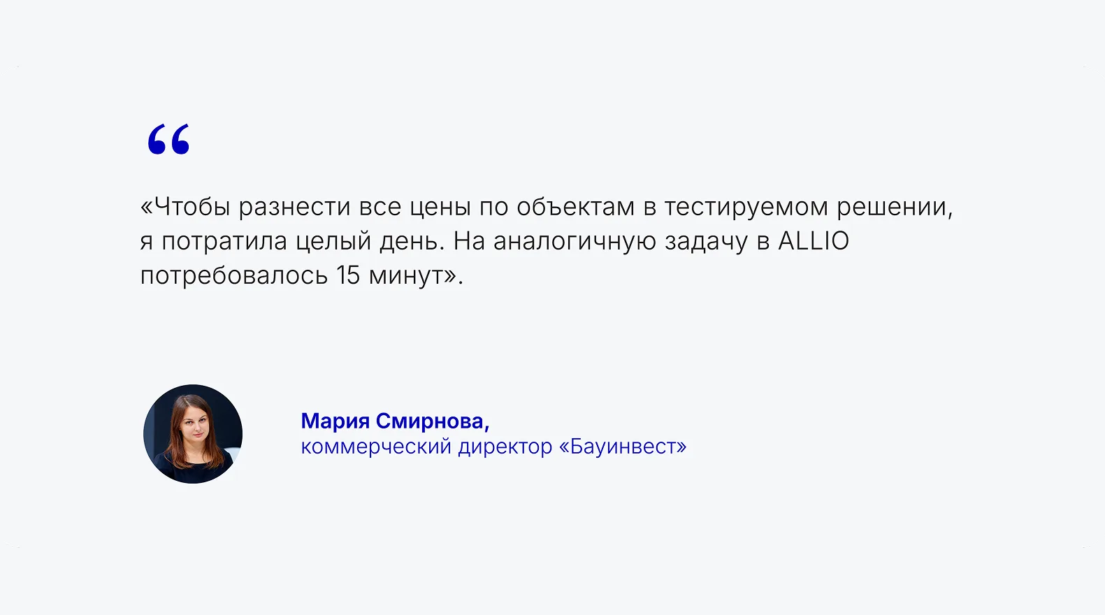 Чтобы эксперимент глобально не повлиял на текущие процессы, «Бауинвест» выбрал безопасную стратегию: компания продолжала работать в ALLIO, а на новую платформу завела один объект.