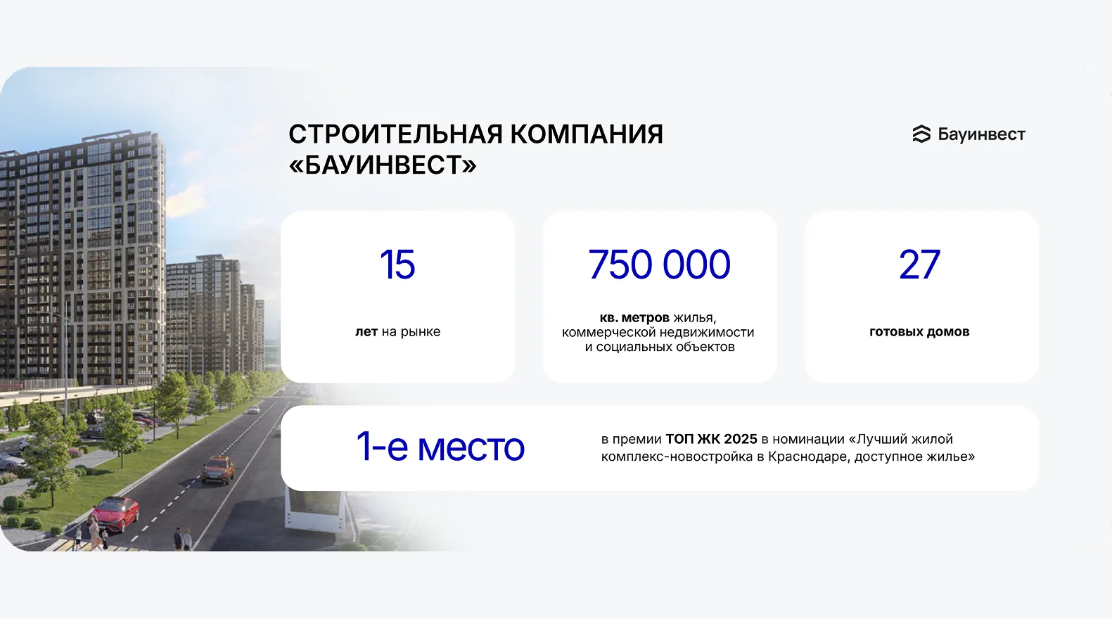 «Бауинвест» специализируется на строительстве многоквартирных монолитно-кирпичных домов класса «комфорт» в самых перспективных районах Краснодара.