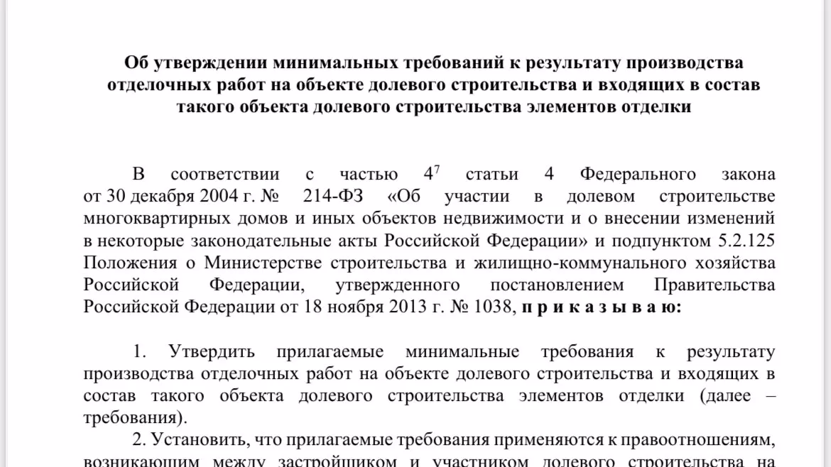 Те самые минимальные требования к отделке, которые мы ждали от Минстроя РФ.