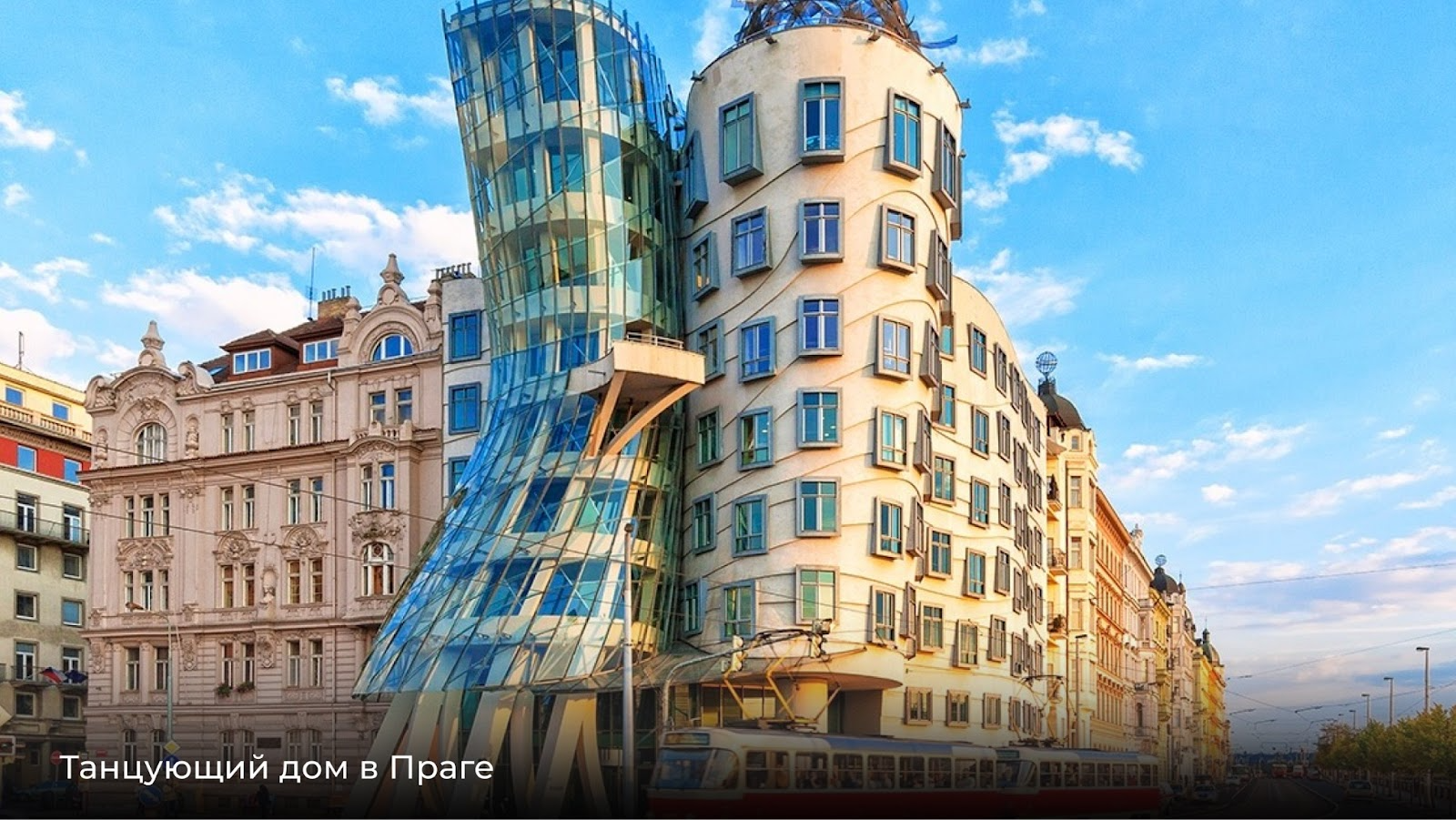 Построенный совместно с чешским архитектором Владеленом Милуничем, этот дом получил прозвище «Джинджер и Фред» благодаря сходству с танцующей парой. Здание удивляет пересечением цилиндрических и волнообразных форм, контрастом стекла и бетона — эта полемика с традиционной застройкой города делает объект одной из самых популярных современных достопримечательностей Праги. Адрес: площадь Йирасково, 1981/6, Прага, Чехия.
