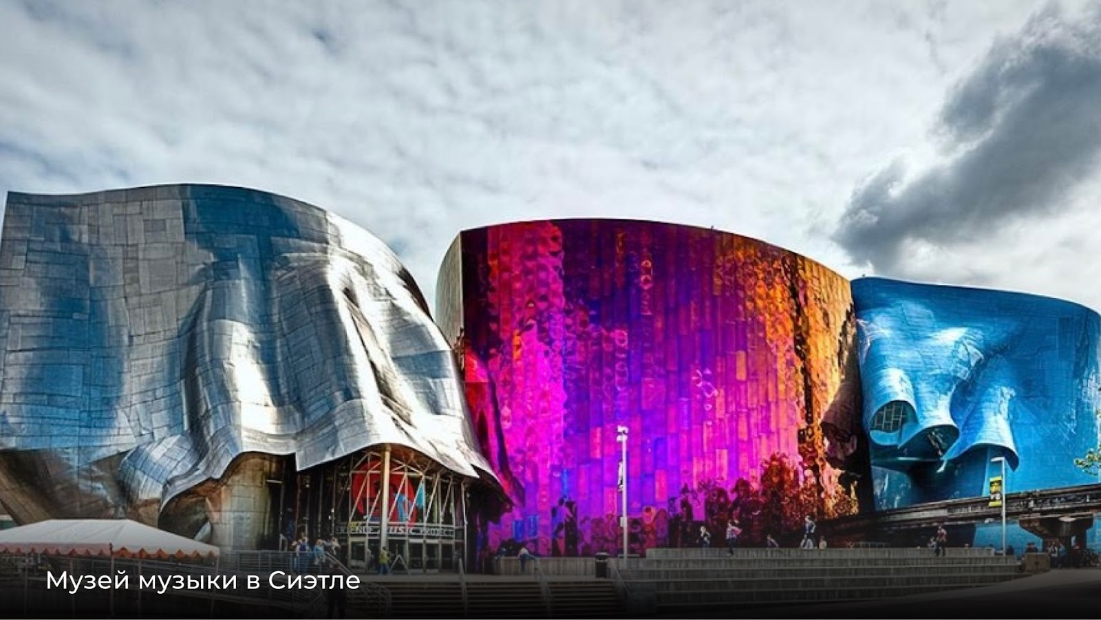 Этот музей посвящён наследию рок-музыканта Джими Хендрикса и по форме напоминает разбитую гитару Fender Stratocaster. Фасады обшиты волнообразным металлом с цветовым градиентом от серебра до фиолетового. Музей стал одной из икон американской современной архитектуры, притягивая туристов необычной пластикой объемов. Адрес: Пятая авеню Норт, 325, Сиэтл, Вашингтон, США.