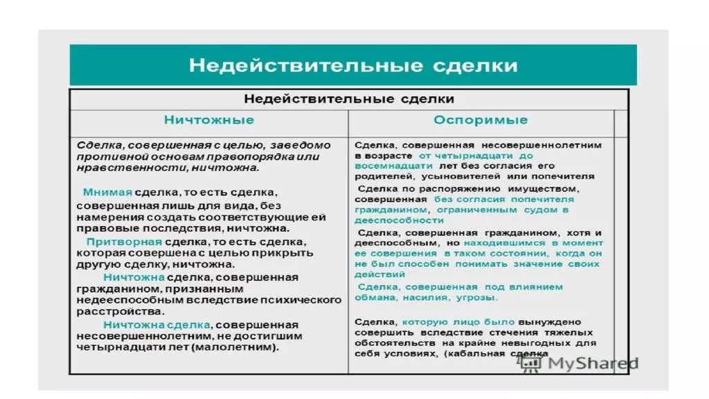 Виды недействительных сделок и их последствия
