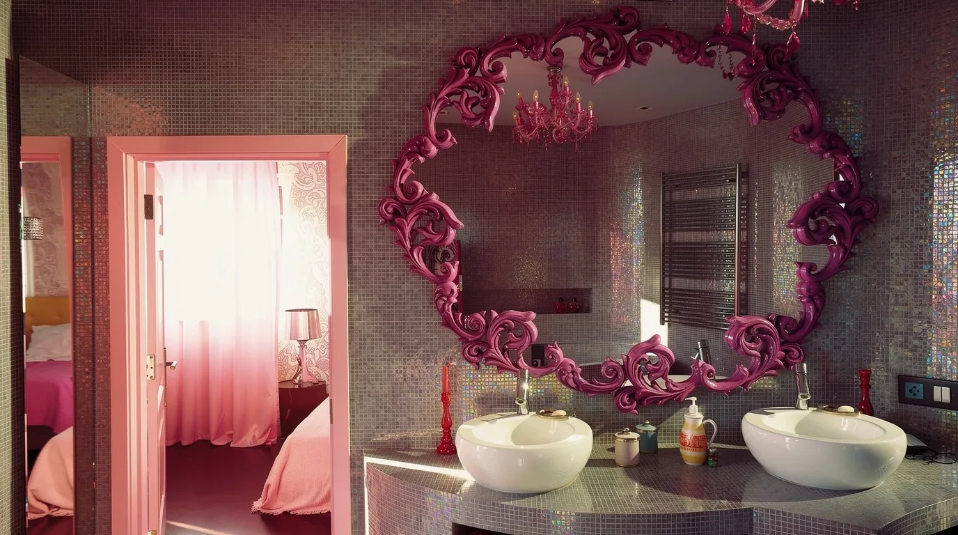 Цветовая палитра квартиры — еще один ключевой элемент концепции. Основной тон — нежно-розовый — используется не как декоративный прием, а как инструмент формирования атмосферы. При этом важно подчеркнуть: интерьер не перегружен деталями, ассоциирующимися с «девичьим» стилем. Здесь нет избыточного декора, позолоты или классических орнаментов. Напротив, пространство выглядит современно и сбалансированно.