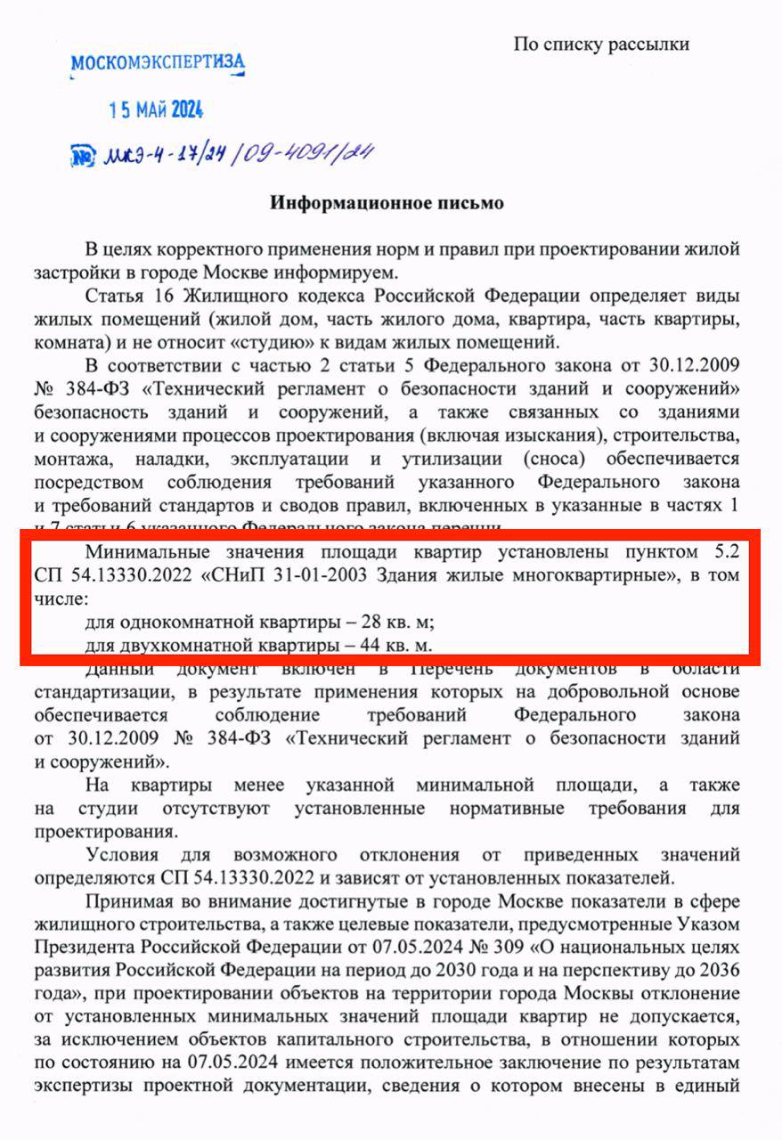 Документ Москомэкспертизы уже утверждён, но пока не опубликован.