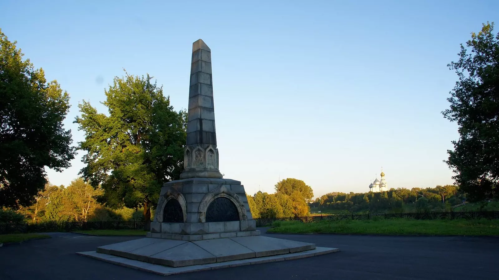Обелиск в честь 800-летия Вологды находится в стороне от современного центра города, но считается, что именно там в 1147 году была основана Свято-Троицкая обитель, с которой и начиналась Вологда. В 16 веке Иван Грозный перенёс центр города в новый построенный Кремль, а последняя церковь в месте основания города была уничтожена в 1936 году. Зато именно на этом месте в 1947 году был заложен памятный камень в честь 800-летия Вологды. А в 1959 году был установлен обелиск с барельефами, который мы и видим в настоящее время. На барельефах изображены: торг на Ленивой площадке на фоне Воскресенской церкви, борьба с польско-литовскими интервентами, провозглашение советской власти в Вологде, надпись «В память 800-летия Вологды 1147 – 1947». Вокруг обелиска – небольшой сквер с деревьями, посаженными космонавтами в 1965 году. От обелиска – красивый вид на реку Вологда. Вологодское городище – это исторический центр города, его укреплённая часть, которая существовала в XV – XVI веках. Центром городища была так называемая Ленивая площадка, названная так из-за того, что товар продавали там прямо на телегах. От Кремля до этого места можно прогуляться пешком через парк. Вокруг открываются очень красивые виды с изгибами реки, церквями, домами.