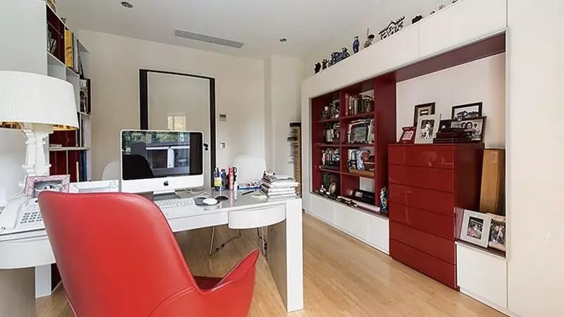 Рядом с зоной отдыха находится кабинет главы семьи. Он также оформлен в красно-белой гамме. В кабинете установлены большие шкафы, где хранятся книги, награды и семейные фотографии. Рабочий стол с компьютером дополняет красное кожаное кресло, в котором Михаил Турецкий принимает важные решения, касающиеся своей работы.