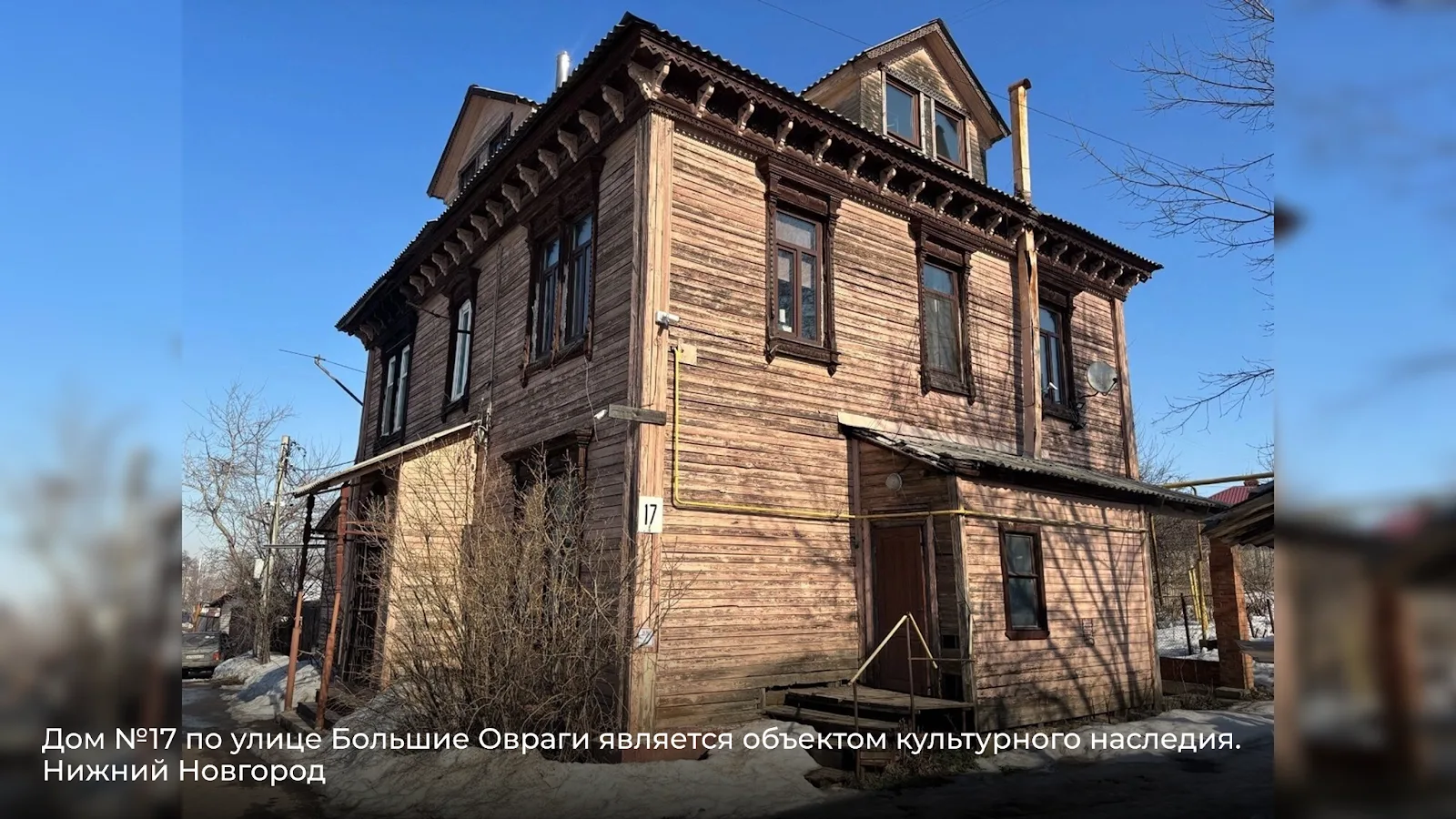 Дом №17 — бывшая дача Панфиловой, объект культурного наследия. Исторически значимый, но сегодня в неудовлетворительном состоянии. Именно такие здания чаще всего становятся «витриной» реставрационных проектов.