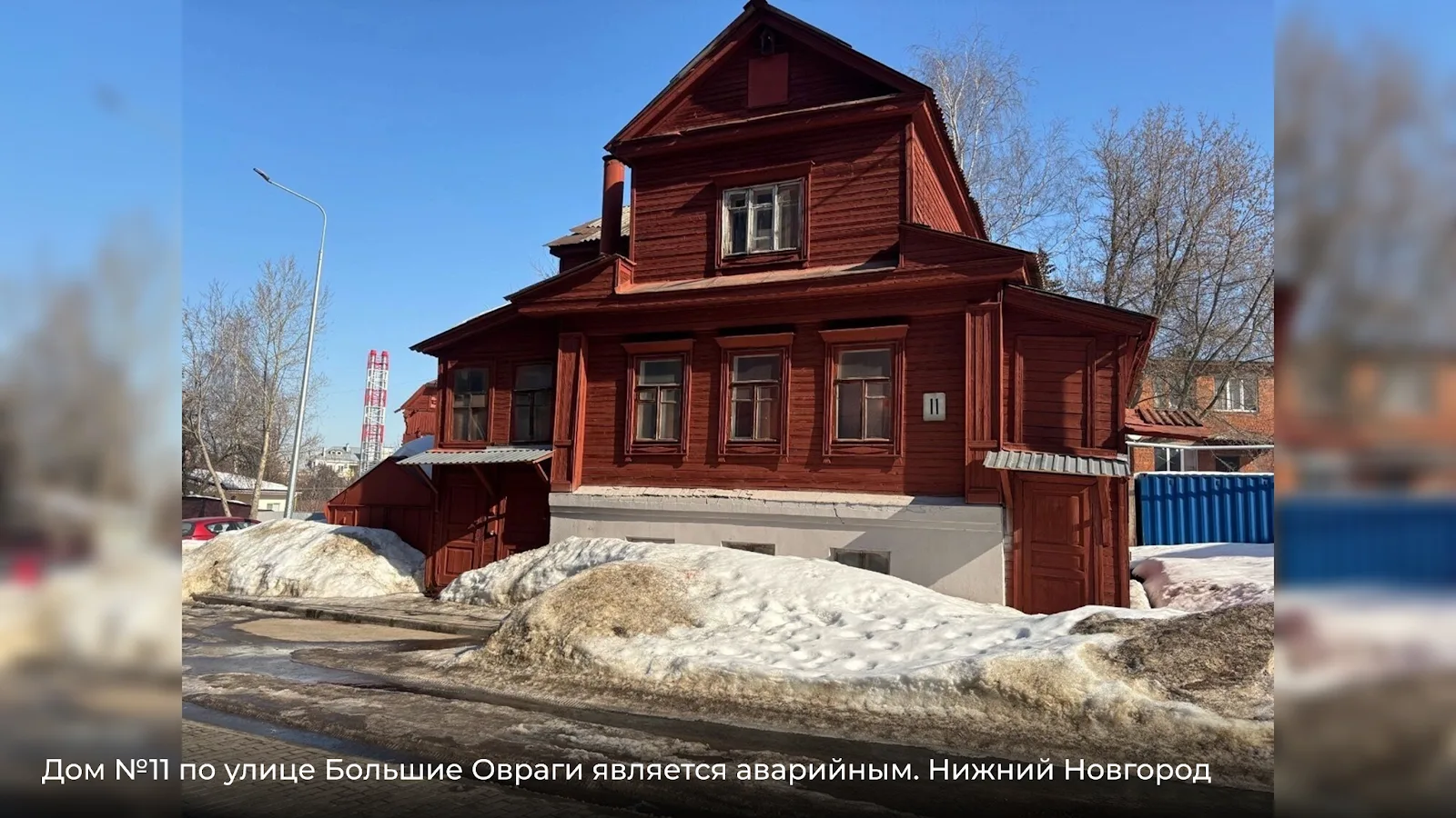Дом №11 — аварийный, с заколоченными окнами. Визуально — классический пример «законсервированного» объекта, который уже выбыл из городской жизни.