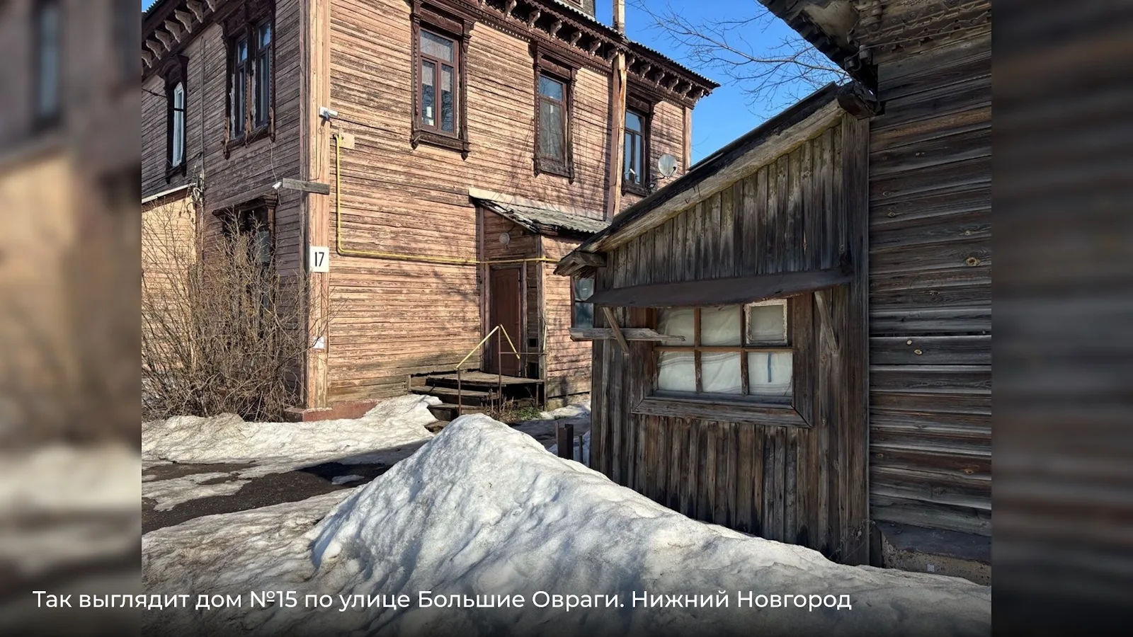 Дом №15 — жилой, но заметно уставший. Окна, пристройки, общее состояние — все говорит о близости к списанию.