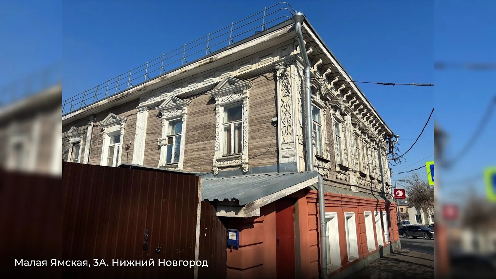 Двухэтажный дом начала XX века на первый взгляд сохраняет архитектурную привлекательность, но состояние фасада говорит о запущенности. Облицовка требует ремонта, резные элементы — реставрации.