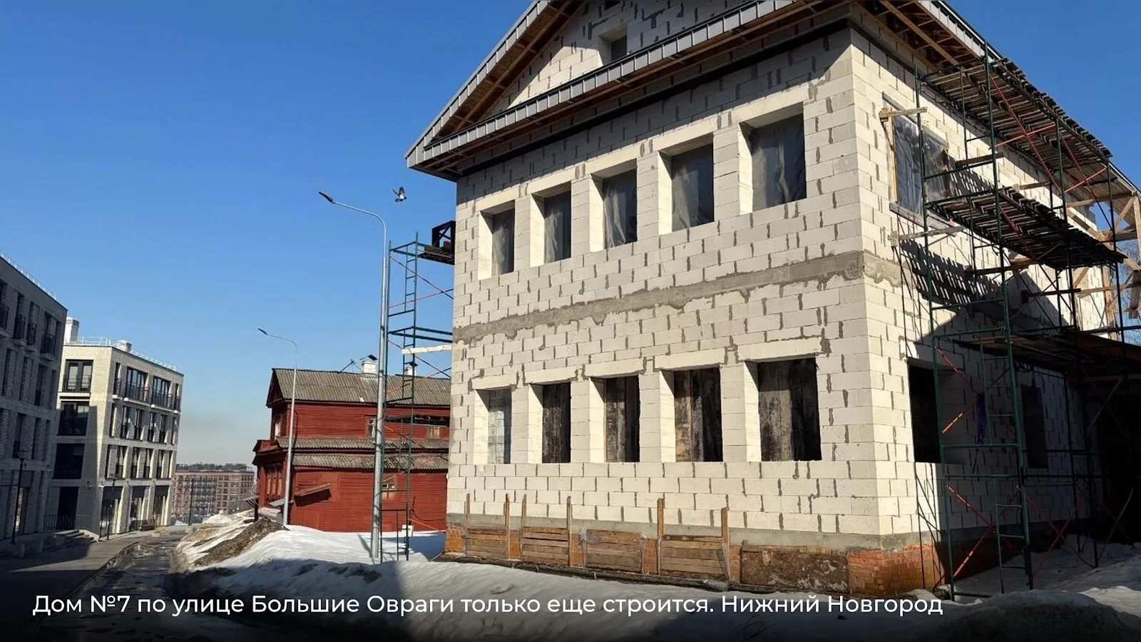 Следом идет дом №7 — неожиданно новый, находящийся в стадии строительства. Его присутствие в списке под снос выглядит парадоксально.