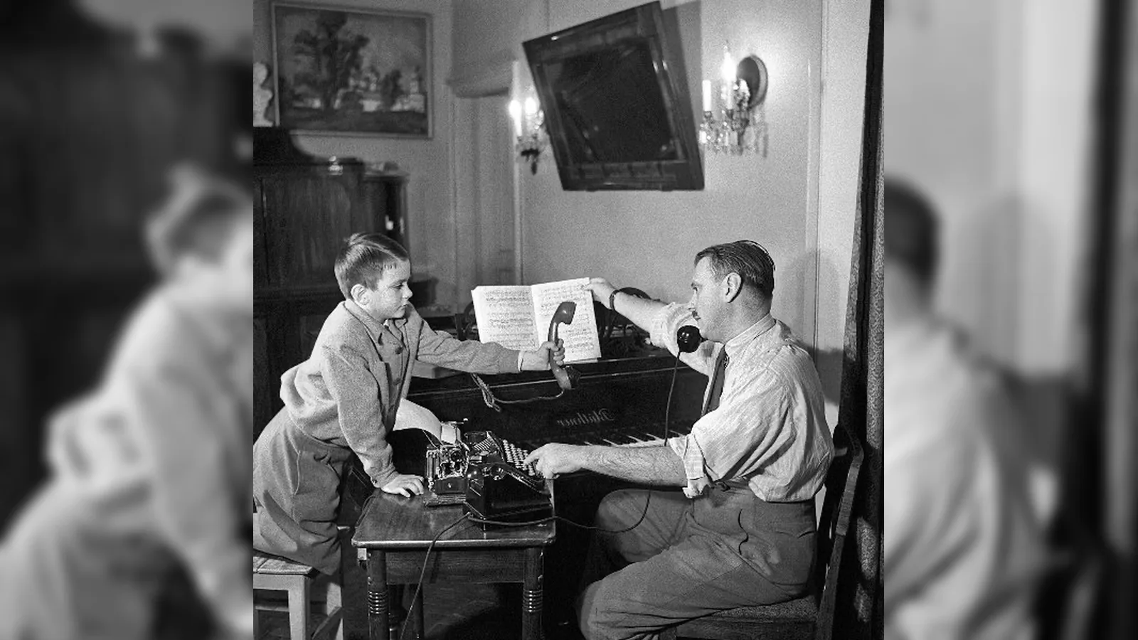 На фото 1952 года поэт Сергей Михалков с сыном Никитой. К этому моменту он уже был фигурой государственного масштаба: соавтор гимна Советского Союза, трижды лауреат Сталинской премии, кавалер орденов Ленина и Красной Звезды. Литературный успех и высокий статус чувствовались и в бытовой стороне жизни. Комната председателя Союза писателей выглядела заметно богаче, чем у среднего гражданина того времени. Добротная мебель из дерева, буфеты, аккуратные столики, элементы, которые в обычной семье были редкостью. Но даже в этой «роскоши» по современным меркам нет ничего сверхъестественного. Это скорее уровень очень обеспеченной, но всё же советской номенклатурной интеллигенции, а не сегодняшних особняков с десятками комнат. Личные телефоны тогда считались привилегией, а предметы вроде рояля можно было встретить чаще в театре, чем в квартире. Поэтому даже у самых известных людей быт оставался в рамках строгой функциональности.