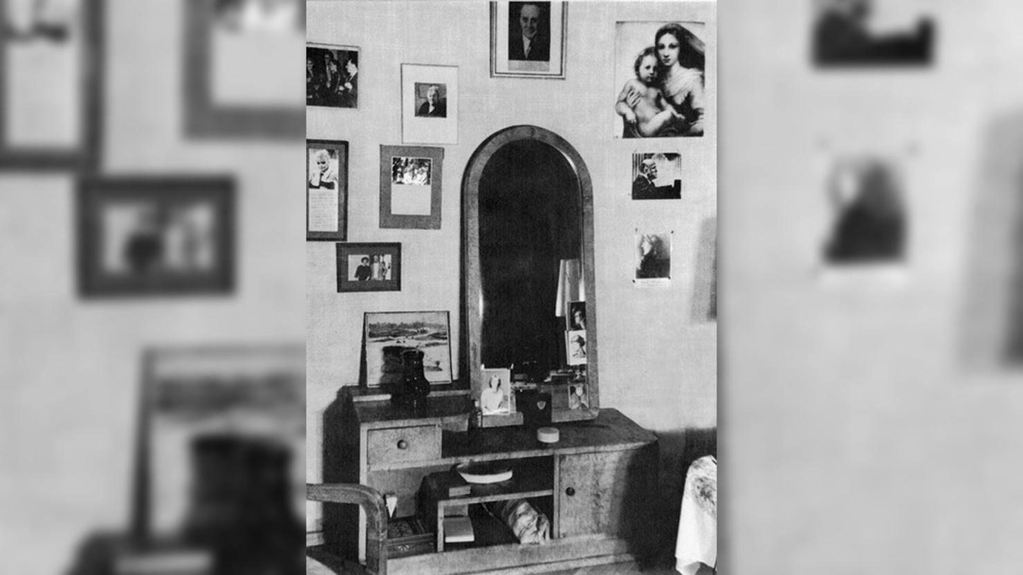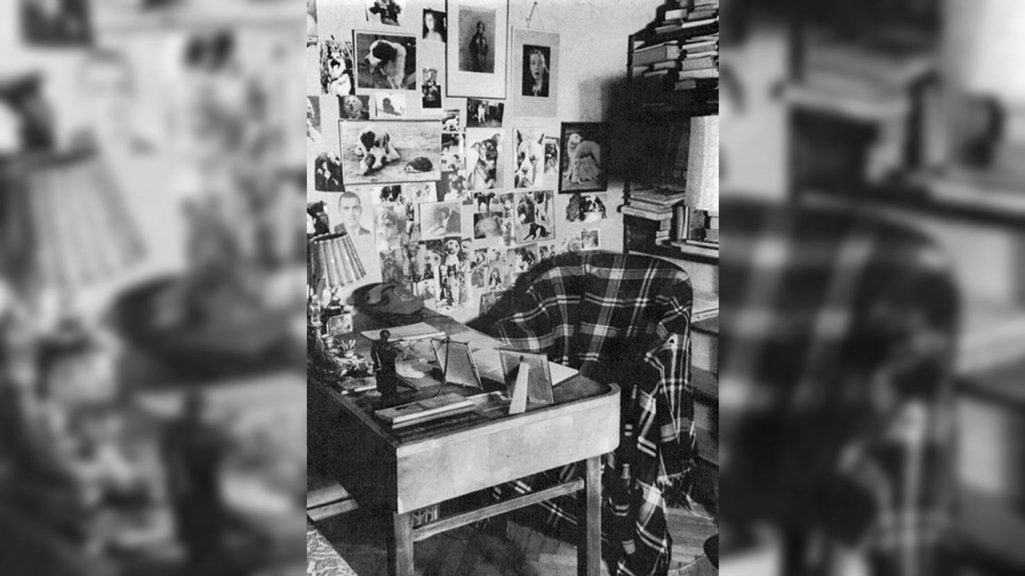 В этой комнате находился и рабочий стол актрисы. Стена за ним была утыкана фотографиями, приколотыми… иголками от инсулиновых шприцев. На снимках — любимый пёс Мальчик, друзья и современники: Анна Ахматова, Василий Качалов, Любовь Орлова и другие близкие Раневской люди.