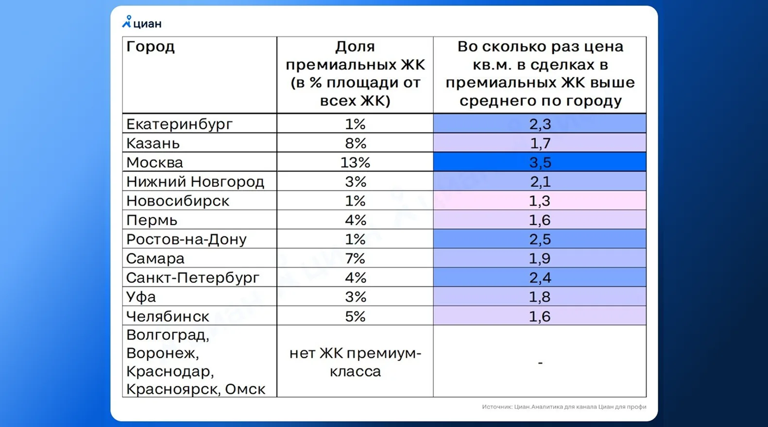 Сразу в пяти российских миллиониках не строится ни одного премиального ЖК — «Циан»