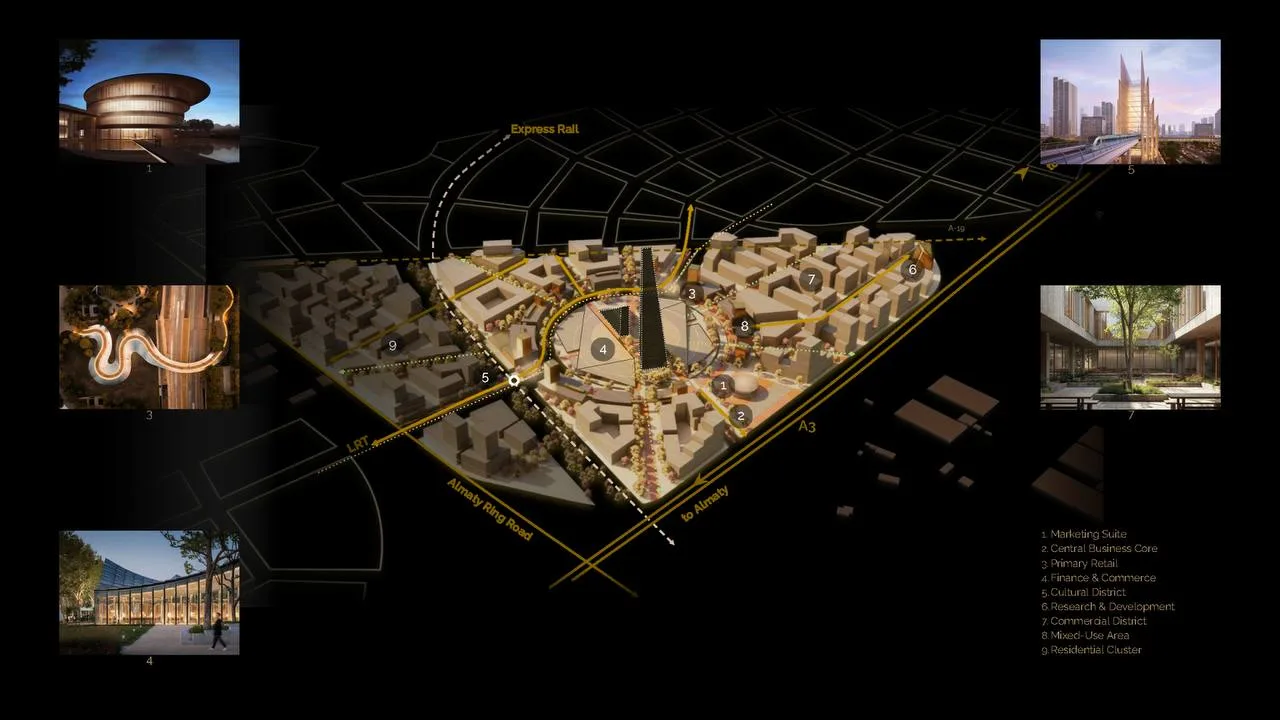 Новый комплекс из двух башен высотой 272 и 110 метров от архбюро SOM (заявку подавало также бюро Zaha Hadid) построят в строящемся городе Alatau City.