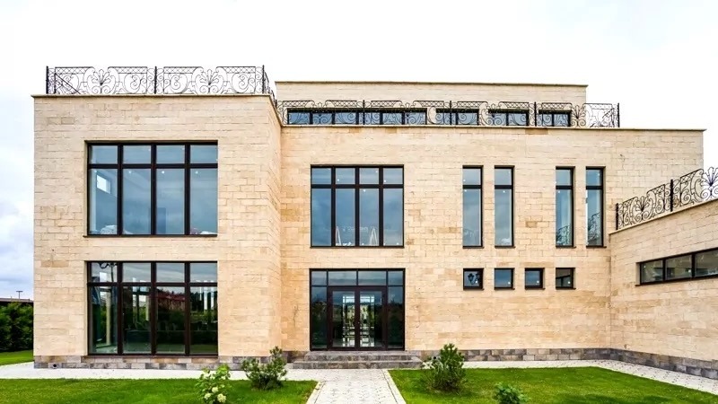 В доме площадью 750 квадратных метров имеется: 4 спальни, столько же санузлов и гардеробных, столовая, хаммам, гостиная с камином, кинотеатр, тренажерный зал, прачечная. Кроме того, на участке есть гараж для двух машин, детская площадка, большой бассейн, зона барбекю и домик для гостей площадью 250 квадратов.