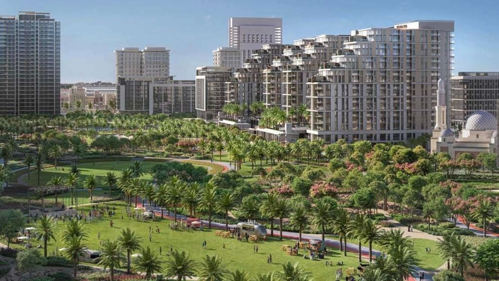 Dubai Hills Estate — это крупный жилой район в центре Нового Дубая, занимающий площадь около 11 миллионов квадратных метров и расположенный рядом с шоссе Al Khail Road. Район известен своими зелеными зонами, включая 18-луночное поле для гольфа мирового класса, и богатой инфраструктурой с пятью международными школами, торговым центром Dubai Hills Mall, медицинскими клиниками и удобными транспортными связями с основными районами города, такими как Downtown Dubai и Dubai Marina (примерно 15 минут на машине). Цены на недвижимость варьируются: виллы и дома здесь относятся к сегменту высокого класса и могут достигать 100 миллионов рублей.