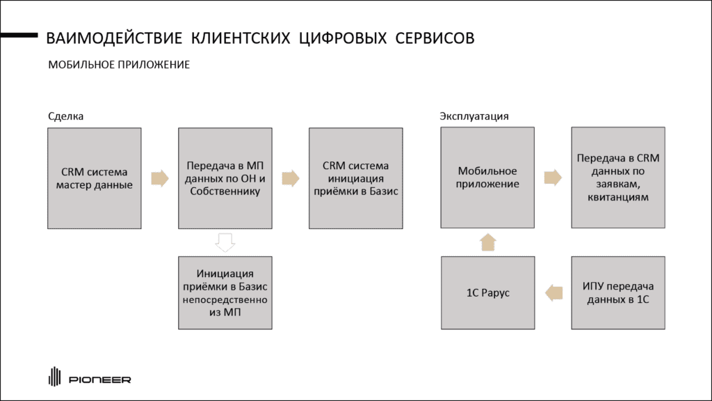 «По функционалу: на этапе эксплуатации есть передача через мобильное приложение данных в CRM по заявкам, квитанциям. Мы получаем в 1С ИПУ-показатели, которые, опять же, передаются в мобильное приложение. И сейчас дорабатывается решение, чтобы на этапе сделки мы непосредственно из мобильного приложения открывали приемку в “Базисе”», – рассказал Тимофей.
