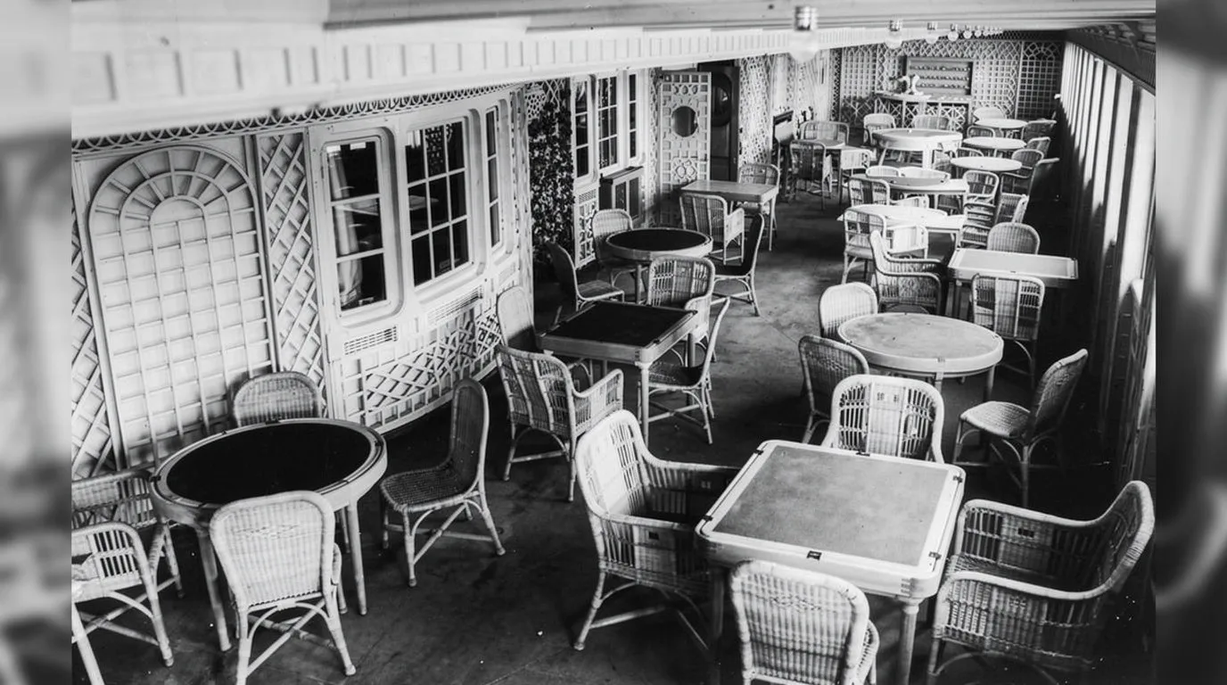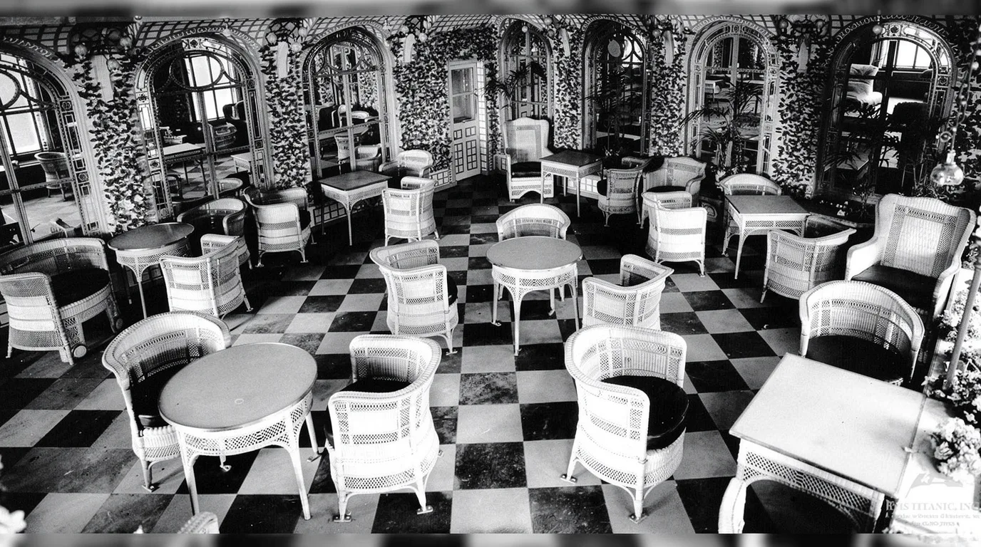 Французское кафе с плетеной мебелью и большим количеством света стало одним из самых популярных мест среди пассажиров первого класса. Его расположение рядом с прогулочной палубой обеспечивало визуальную связь с морем.