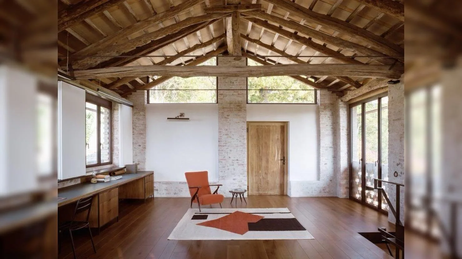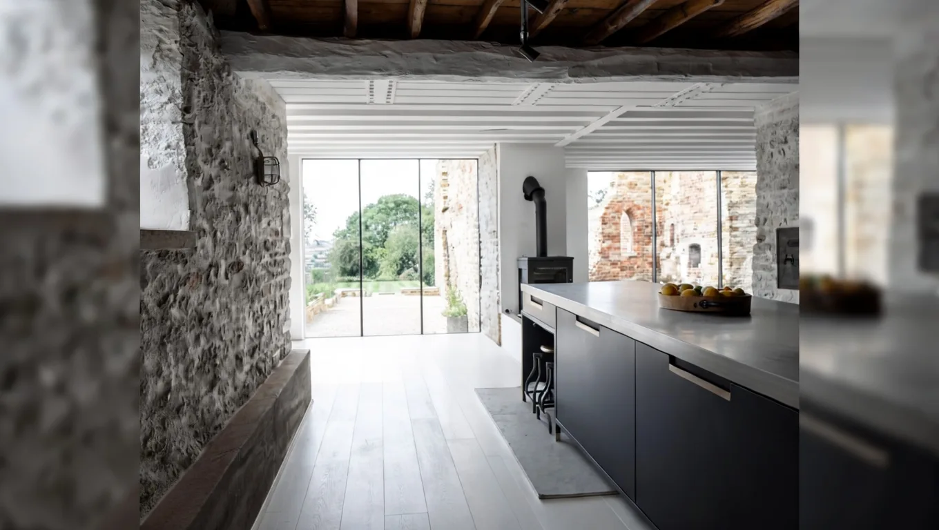 Все новые элементы чётко отделены от старых. Деревянные конструкции кровли выполнены в современной интерпретации и не пытаются повторять традиционные формы. В интерьере использованы простые, тактильные материалы без декоративных излишеств. Минималистичная отделка подчёркивает грубую текстуру камня. Пространство внутри дома воспринимается как единый объём, наполненный светом. Новые оконные проёмы аккуратно встроены в существующую кладку. Они не маскируют возраст стен, а, наоборот, усиливают его восприятие. Архитекторы сознательно оставили следы времени видимыми. Дом не стилизован под «старинный амбар», но и не превращён в абстрактный современный объект. Он существует на границе эпох. Проект демонстрирует уважение к сельскому контексту без ностальгии. Redhill Barn часто рассматривают как пример архитектуры без компромиссов. Здесь прошлое не реставрируют, а признают. Современность выступает не как соперник, а как продолжение.