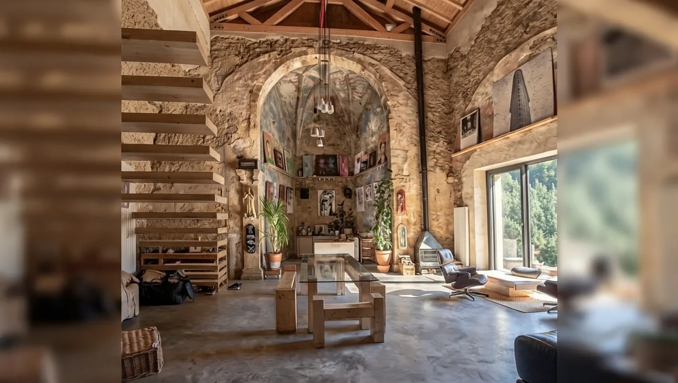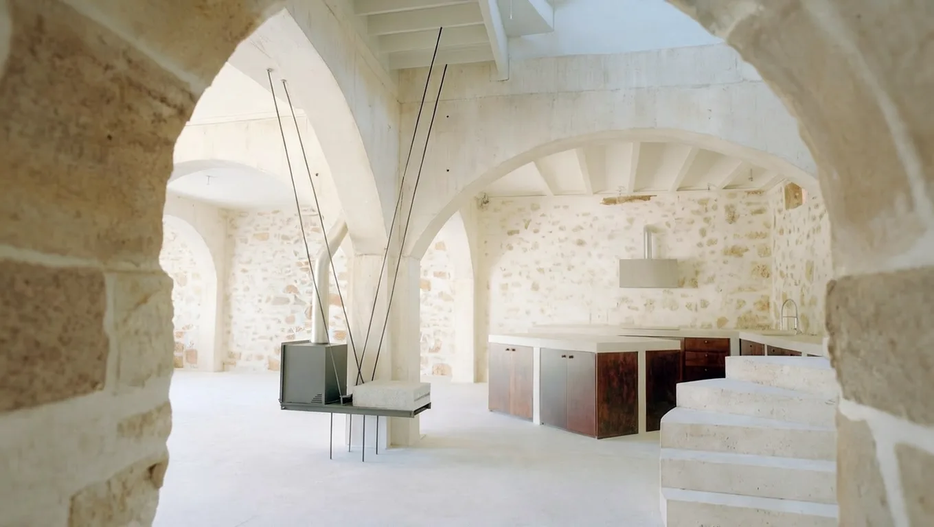 Новые жилые объёмы встроены внутрь существующего пространства и не конкурируют с исторической архитектурой. Современные конструкции выполнены из нейтральных материалов, чтобы не отвлекать внимание от старого камня. Планировка подчёркивает вертикаль здания, сохраняя ощущение воздуха и света. Естественное освещение поступает через восстановленные оконные проёмы и подчёркивает текстуру кладки. В интерьере отсутствует избыточный декор. Архитектура сама становится главным выразительным элементом. Контраст между минималистичной мебелью и монументальными стенами усиливает восприятие пространства. Проект демонстрирует, как сакральное здание может получить вторую жизнь без утраты идентичности. Здесь прошлое не стирается, а становится фоном для повседневности. Дом не маскируется под музей, но и не утрачивает историческую память. Такое решение позволяет зданию продолжать существование в новом социальном контексте. Архитектор работает с временем как с материалом. Прошлое и настоящее сосуществуют без конфликта. Этот проект часто приводят как пример адаптивного использования религиозной архитектуры.