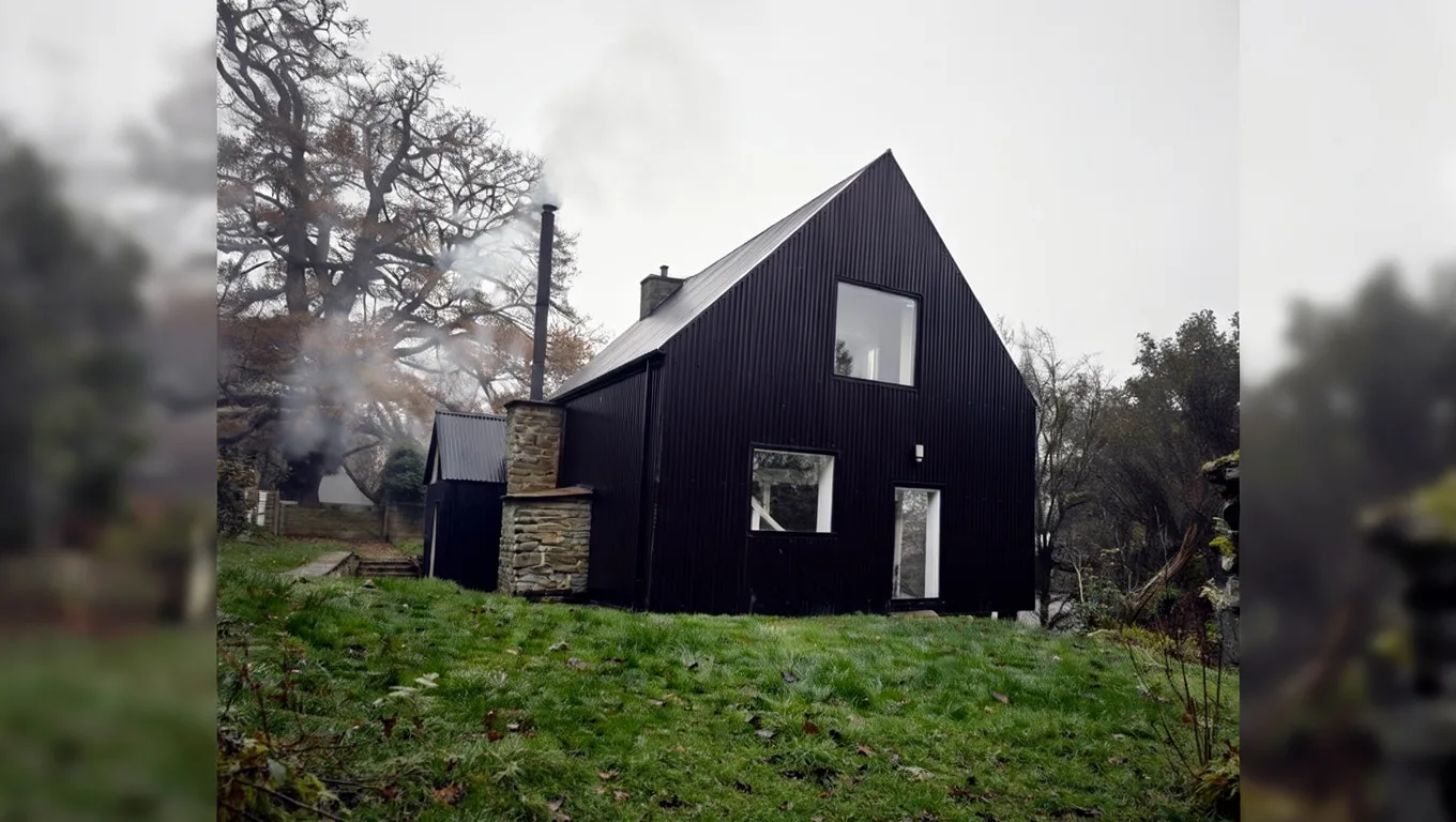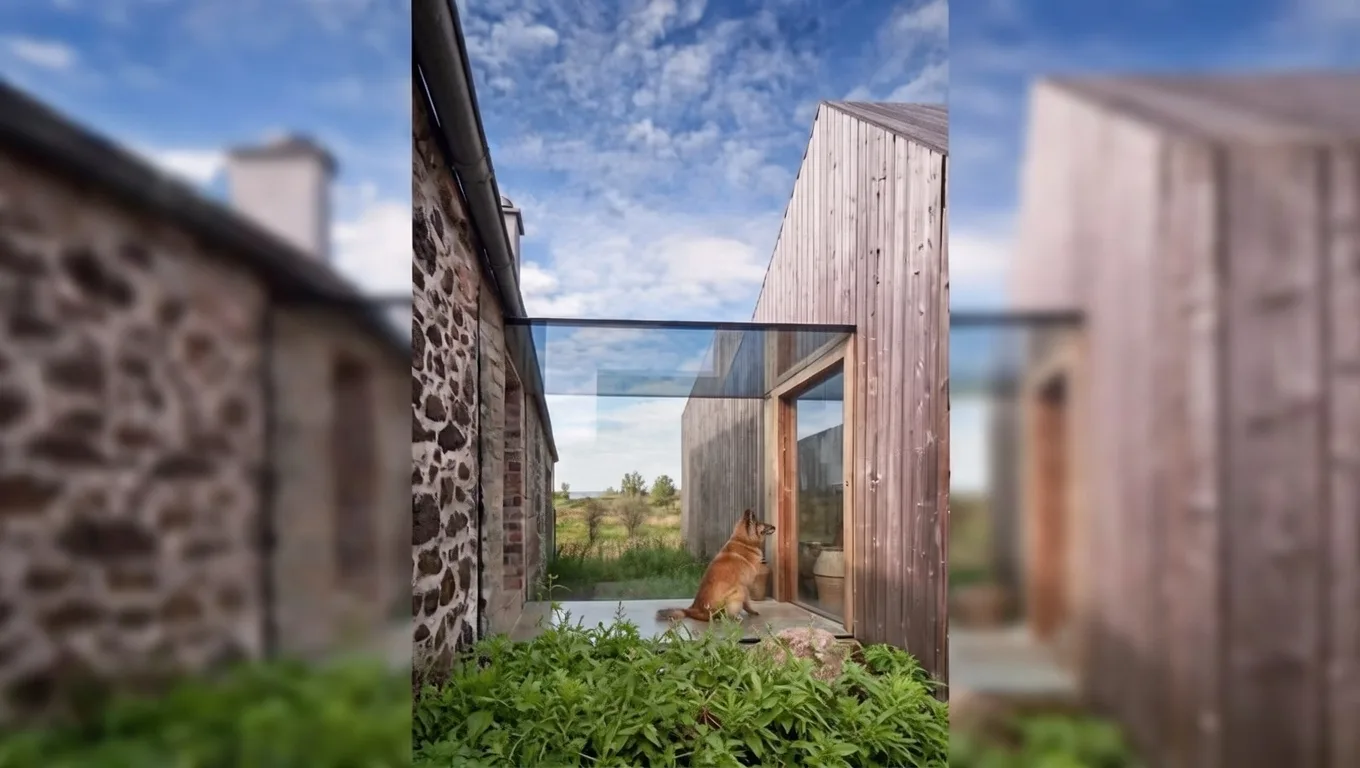 Проект Cuddymoss расположен в сельской части Шотландии, где каменные руины являются привычной частью пейзажа. До начала работ здание представляло собой полуразрушенную оболочку без кровли и перекрытий. Студия Ann Nisbet Studio увидела в этих стенах не проблему, а архитектурный потенциал. Основной идеей стало сохранение исторического периметра без попытки вернуть ему утраченный «оригинальный» вид. Внутри каменных стен был размещён самостоятельный деревянный объём, который не соприкасается со старой кладкой напрямую. Такое конструктивное решение позволило сохранить руины в их подлинном состоянии. Новый дом буквально «вставлен» внутрь исторического каркаса. Материалом для внутреннего объёма выбрано дерево — тёплое, тактильное и контрастное по отношению к холодному камню. Все современные элементы читаются сразу и не маскируются под старину. Дополнительная жилая пристройка вынесена за пределы руин. Она соединена с основным объёмом прозрачным стеклянным переходом. Этот переход подчёркивает разрыв между эпохами и одновременно связывает пространства. Каменные стены продолжают выполнять роль защитной оболочки, но не несут конструктивной нагрузки.