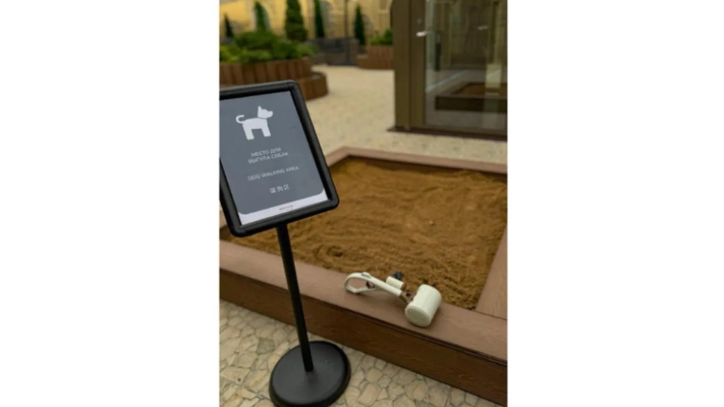 - бесплатная площадка с песком и мисками;