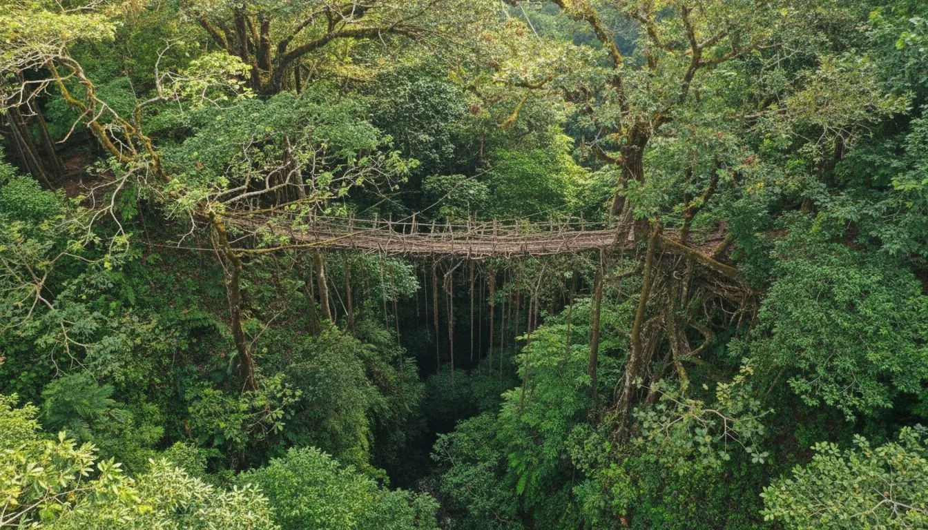 В индийском штате Мегхалая мосты создаются не за годы, а за десятилетия. Их формируют из корней каучуковых деревьев, которые местные жители направляют через реки и овраги. Со временем корни переплетаются, утолщаются и образуют устойчивую конструкцию.