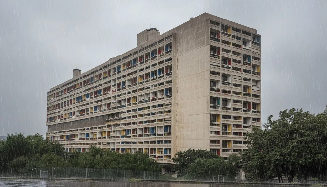 Главная инновация — использование системы модулора, где пропорции пространства выстраиваются исходя из человеческого тела. Этот комплекс стал отправной точкой для брутализма и оказал влияние на массовое жилищное строительство по всему миру.