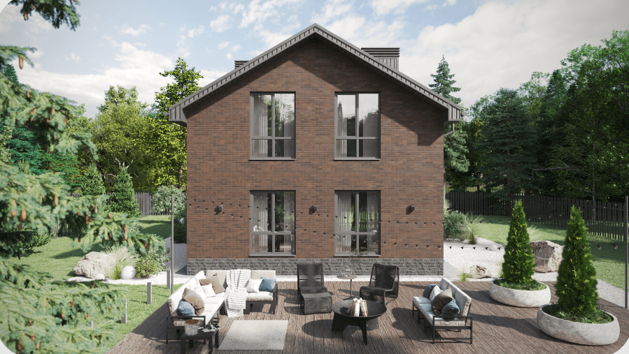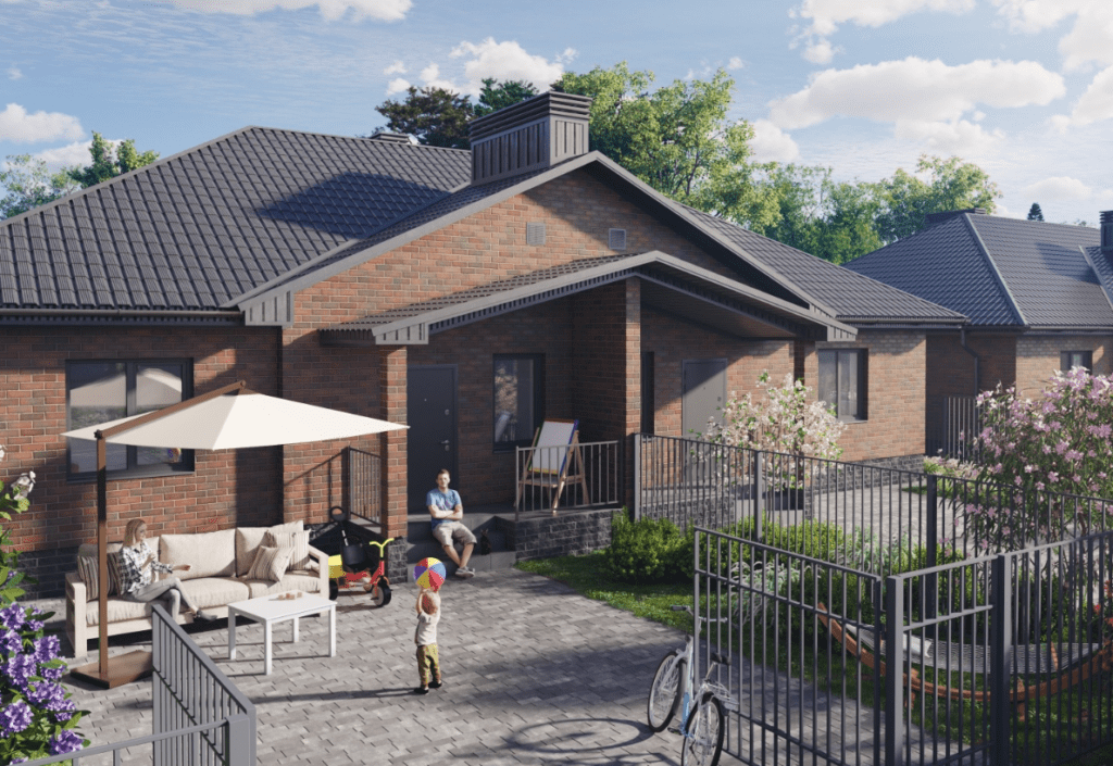 Самые компактные по формату – дома категории S. Они рассчитаны на семью из 4 человек. В линейке домов категории М есть одно- и двухэтажные проекты. Самые большие здания – категории L, они достигают площади 208 ква.м. Все дома выполнены в едином стиле с использованием микса фасадного кирпича «Баварская кладка».