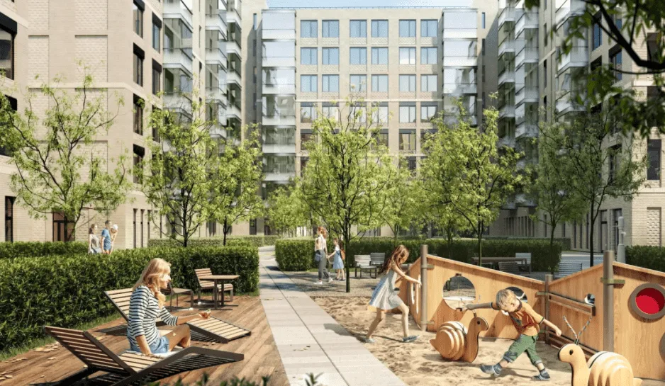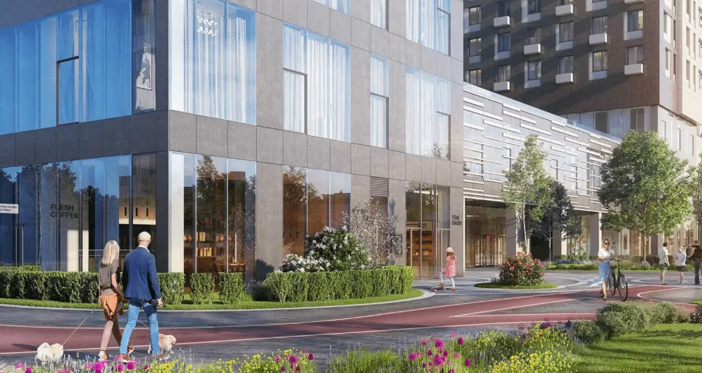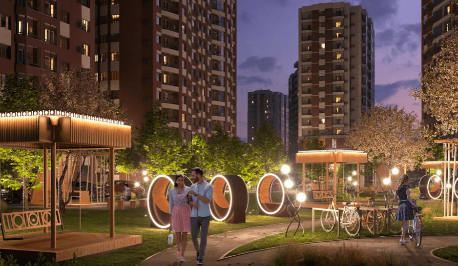 Сам ЖК выполнен в сдержанном европейском стиле и включает в себя несколько домов разной этажности — от 10 до 19. Рядом также есть парк, который не только внешне привлекает, но и для комфортных прогулок располагает. Предусмотрены аллеи для утренних пробежек и велодорожки для любителей здорового образа жизни, современная детская площадка с качелями для детей и теневыми навесами и скамейки для взрослых.
